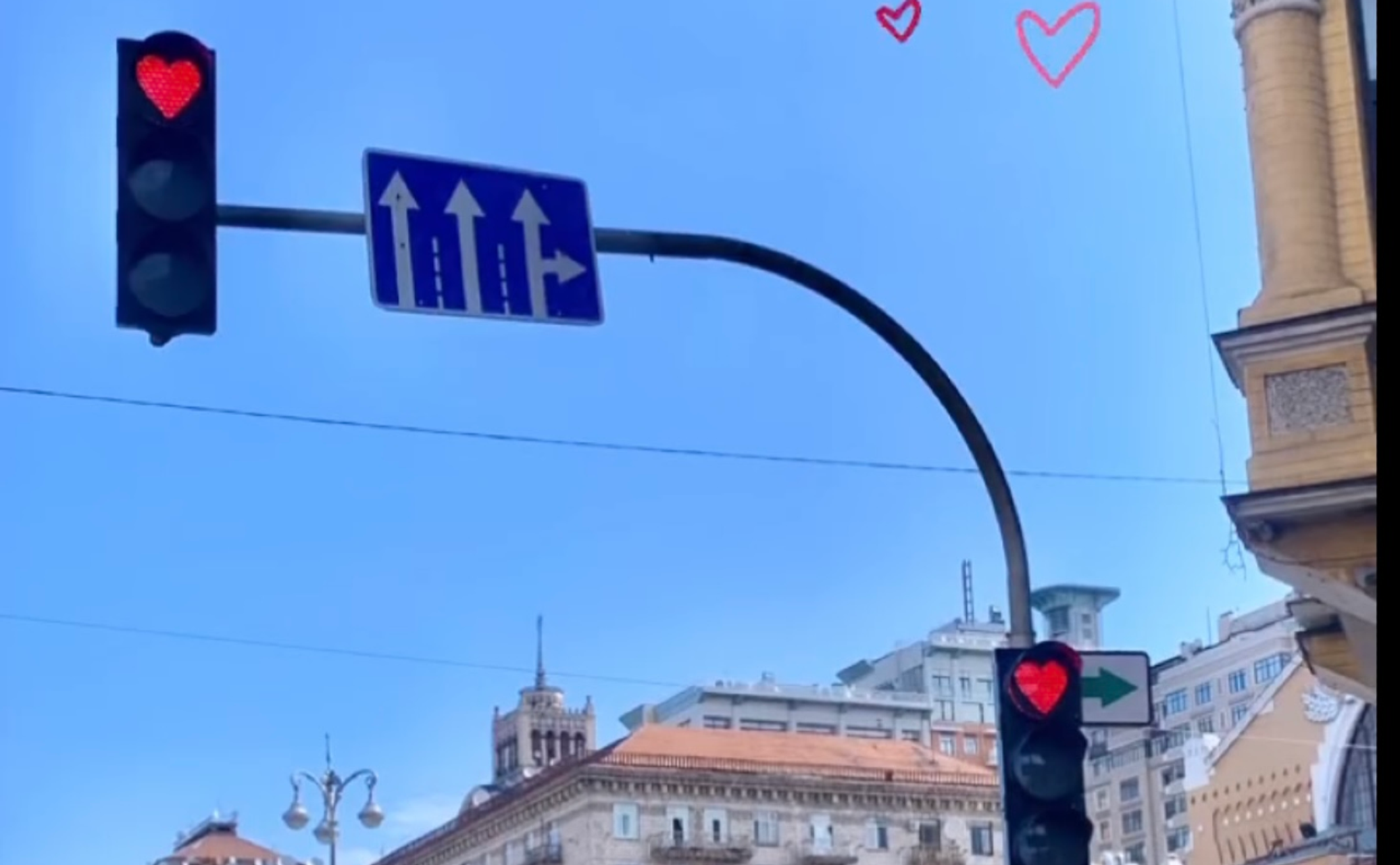 В Киеве хулиган заменил красный сигнал светофора на сердечки