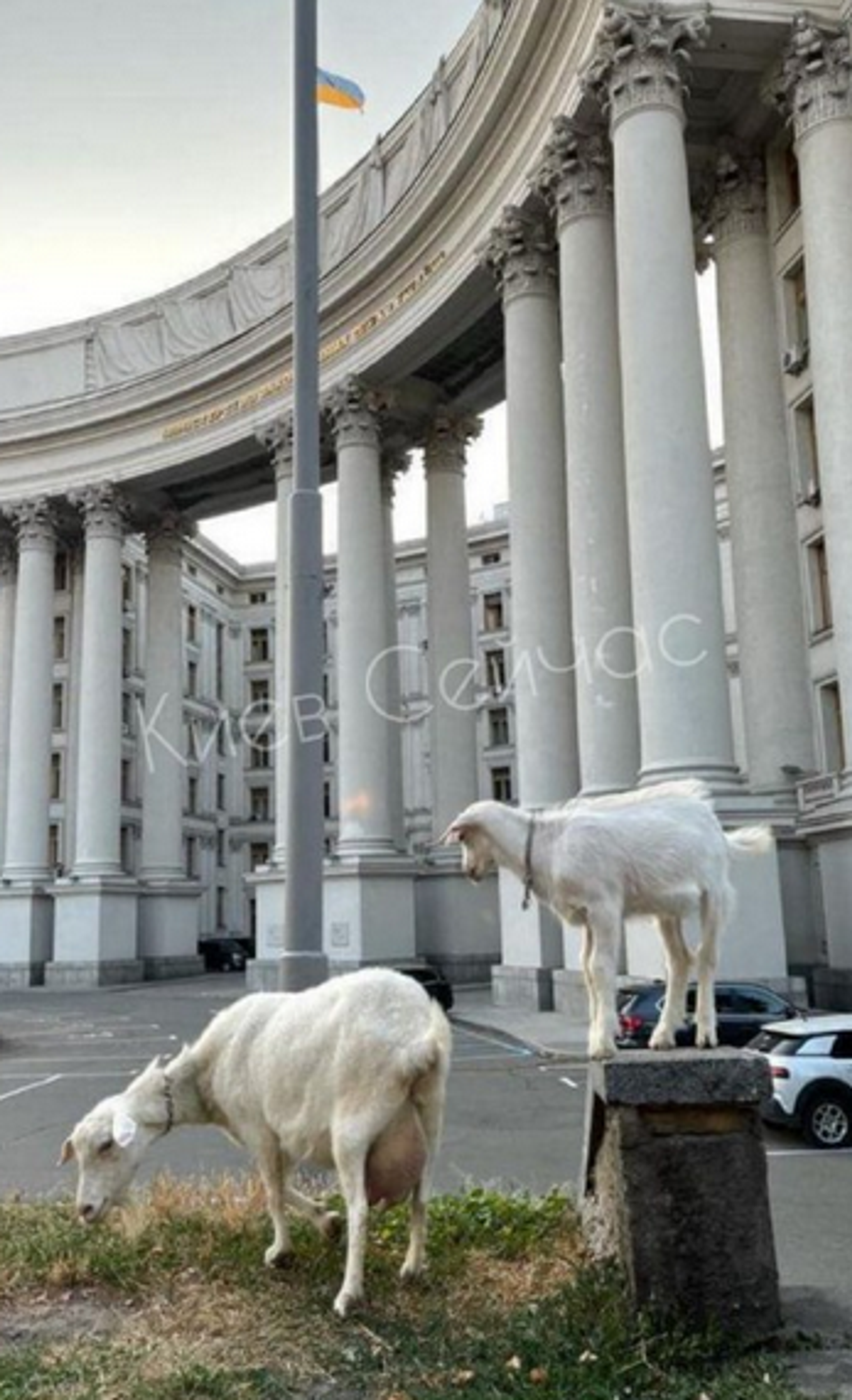 «Новые сотрудники»: у здания МИД Украины заметили коз