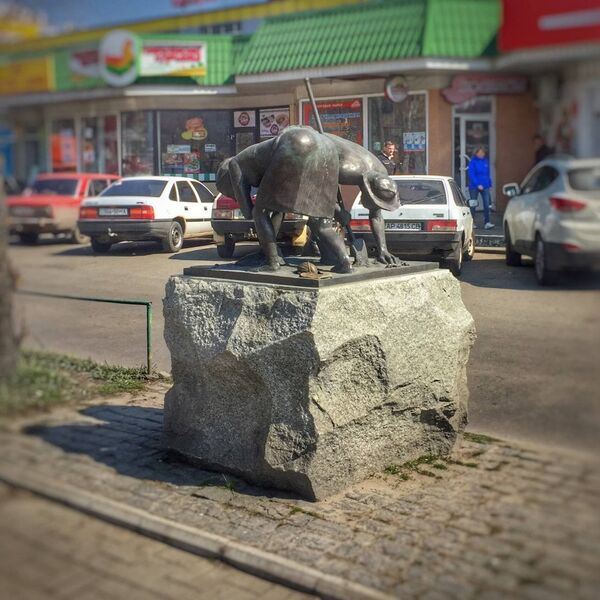 Скульптура размещена на центральной площади города Горишние Плавни, где местные власти долгие годы безуспешно воюют с уличной торговлей. С монументом связана примета: считается, что если посидеть рядом с ним до восхода солнца, то торговля весь день будет удачной.