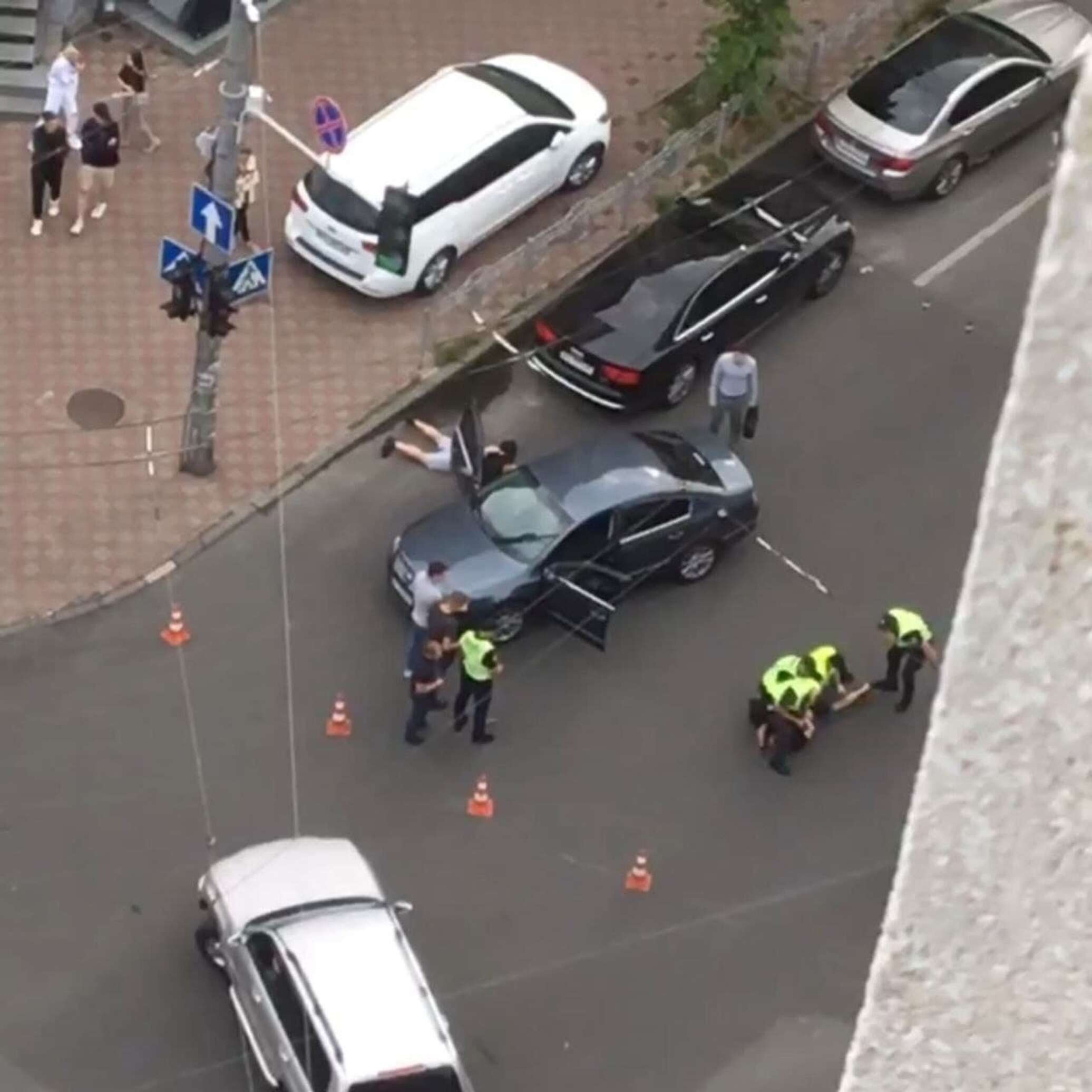 «Произошло это на улице Саксаганского, которая также перекрыта из-за репетиции. Мужчина с оружием выскочил из толпы и вел себя неадекватно», — сообщили в паблике.