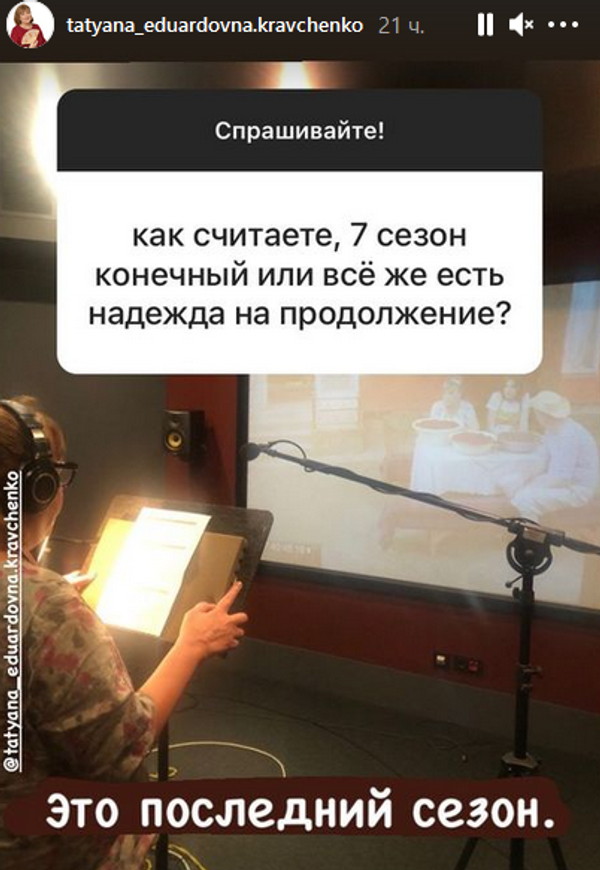 Отвечая на вопросы поклонников «Сватов», актриса добавила, что седьмой сезон — действительно последний сезон сериала.