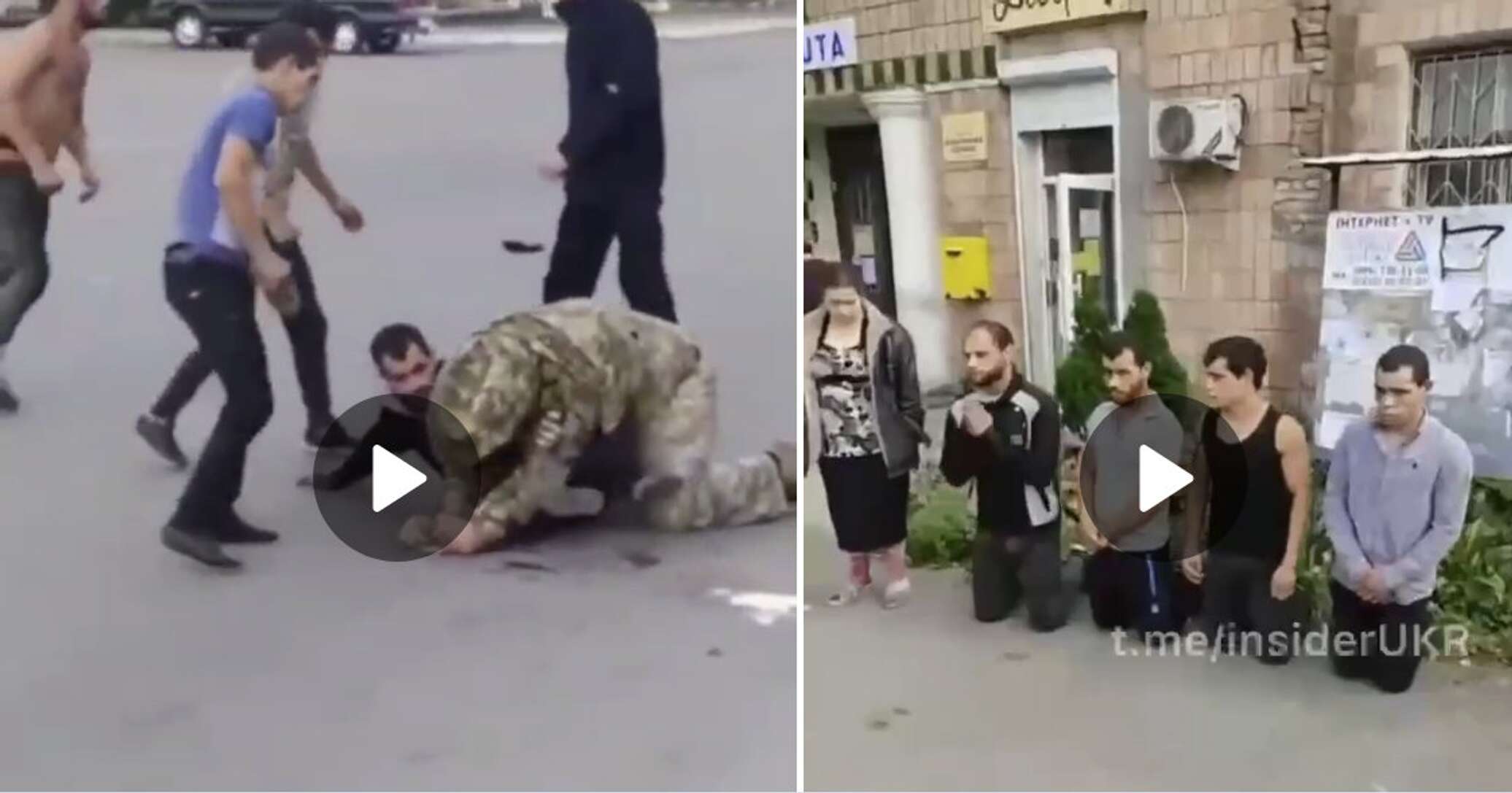 На видео несколько мужчин избивают оппонентов в военной форме, называя их фашистами и нацистами.