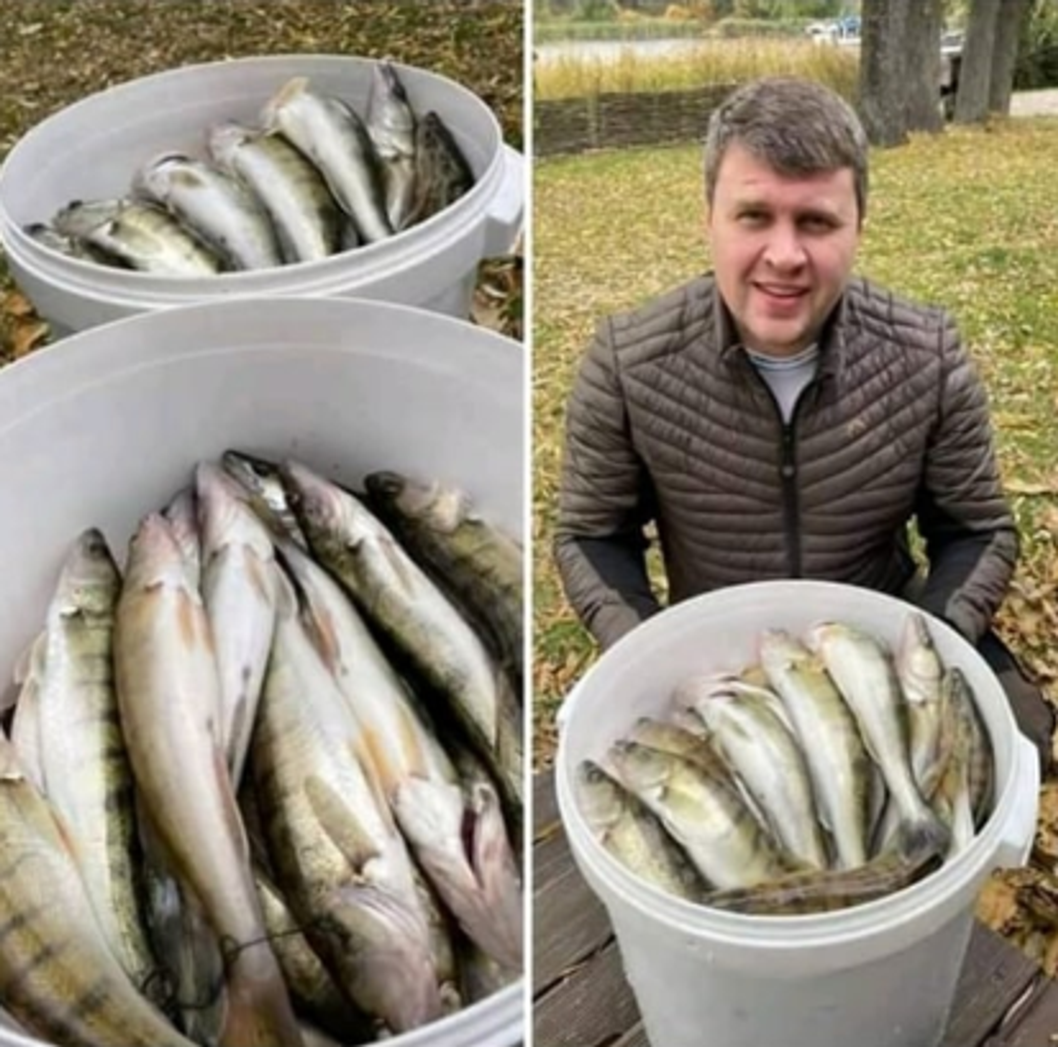 Депутат опубликовал два снимка, на одном из них он сидит у ведер с уловом, а на другом — показывает рыбу, пойманную на так называемый «драч» — запрещенное самодельное приспособление, собранное из нескольких спаянных крючков.