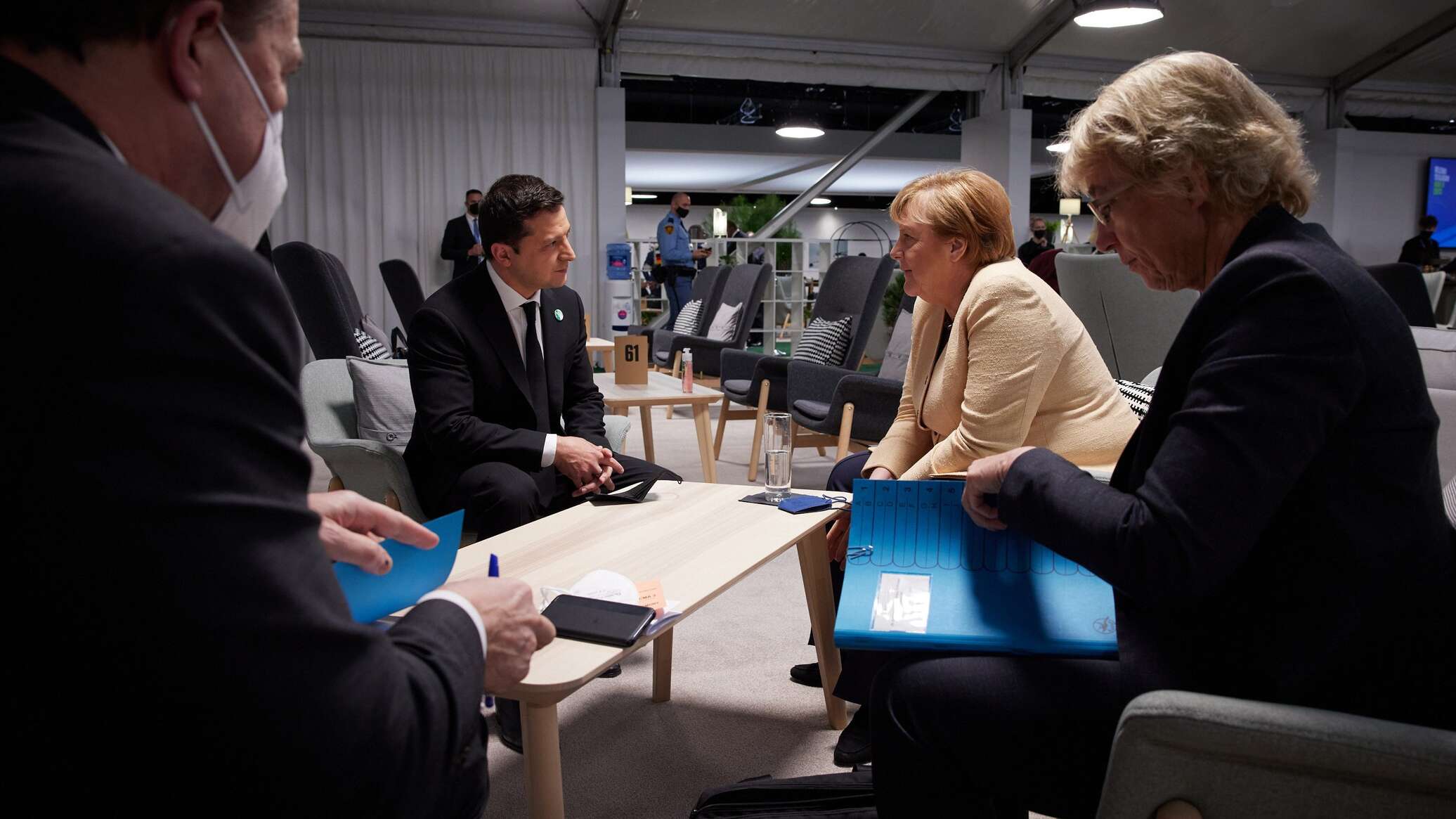 «Во время встречи в Глазго с Ангелой Меркель обсудили текущую ситуацию с безопасностью на Донбассе и ход переговоров для установления мира, энергетический кризис в Европе и пути его преодоления, а также актуальные вопросы отношений Украины и Германии», — написал Зеленский.