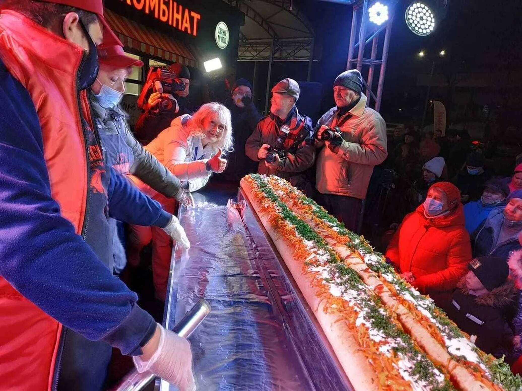 Новый рекорд: украинцы приготовили двухметровый хот-дог