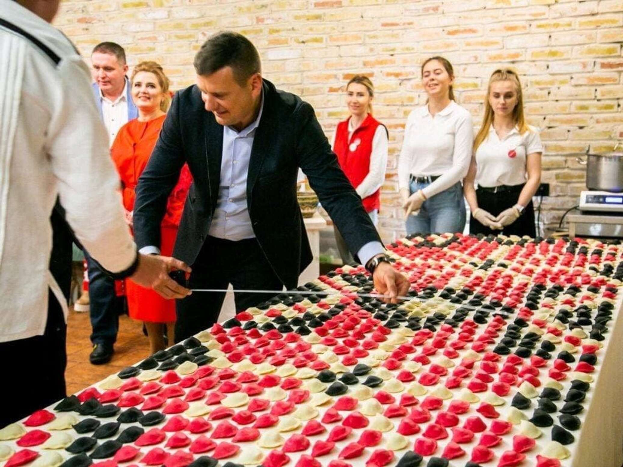 «Вареничное полотенце шириной метр, а длиной — 4 метра. Специально для рекорда пришлось лепить вареники трех цветов — белые, красные и черные», — прокомментировал Telegram-канал событие.