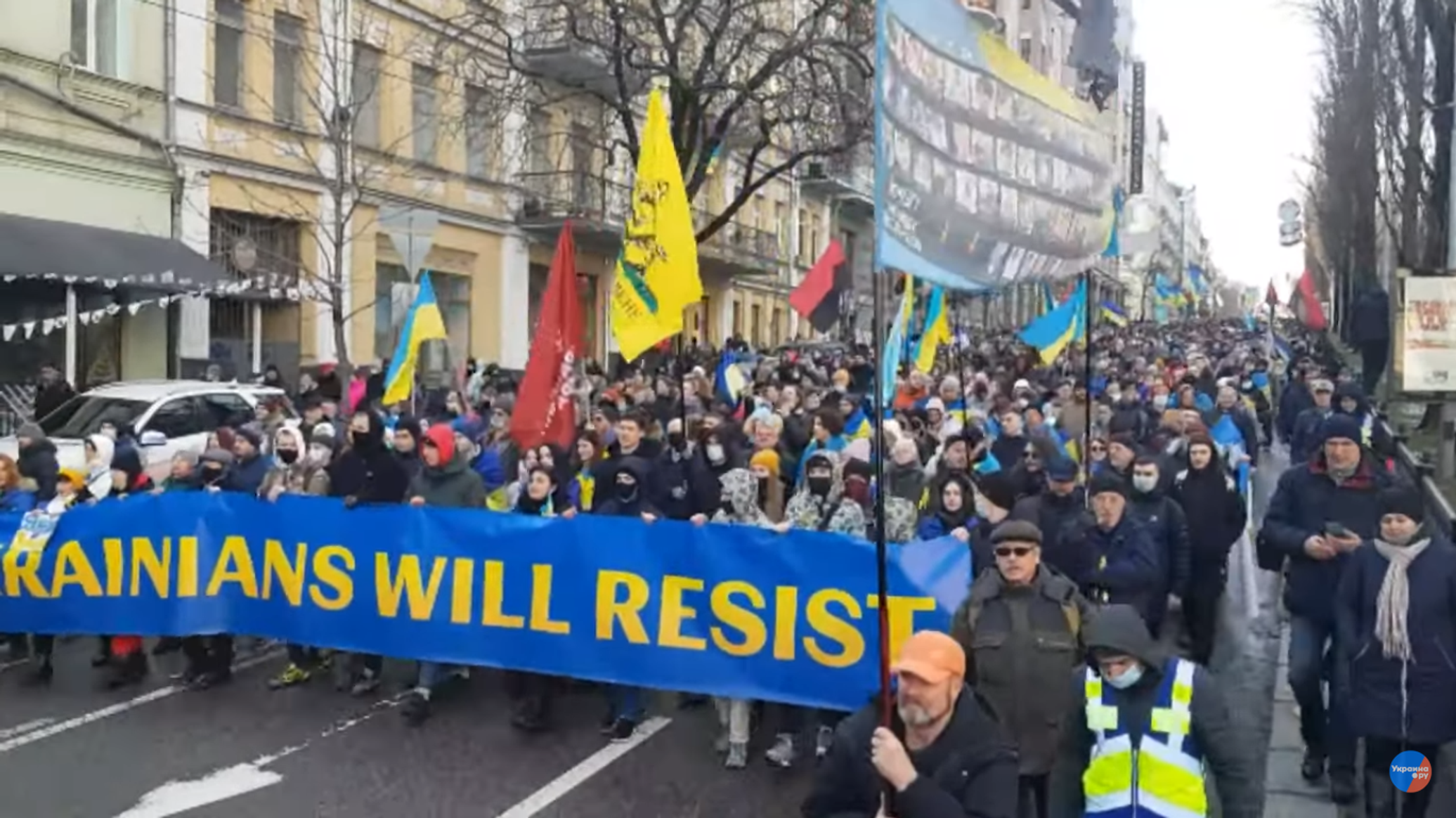 Активисты выкрикивали известные бандеровские, а также антироссийские лозунги и оскорбления в адрес Президента РФ Владимира Путина. По словам организаторов, главной целью марша было продемонстрировать, что украинцы готовы объединяться и будут сопротивляться "российской агрессии". Акция прошла на фоне очередной волны слухов о скором вторжении России на Украину, разгоняемой западными средствами массовой информации. По их сообщениям, очередное "вторжение" назначено на 16 февраля.