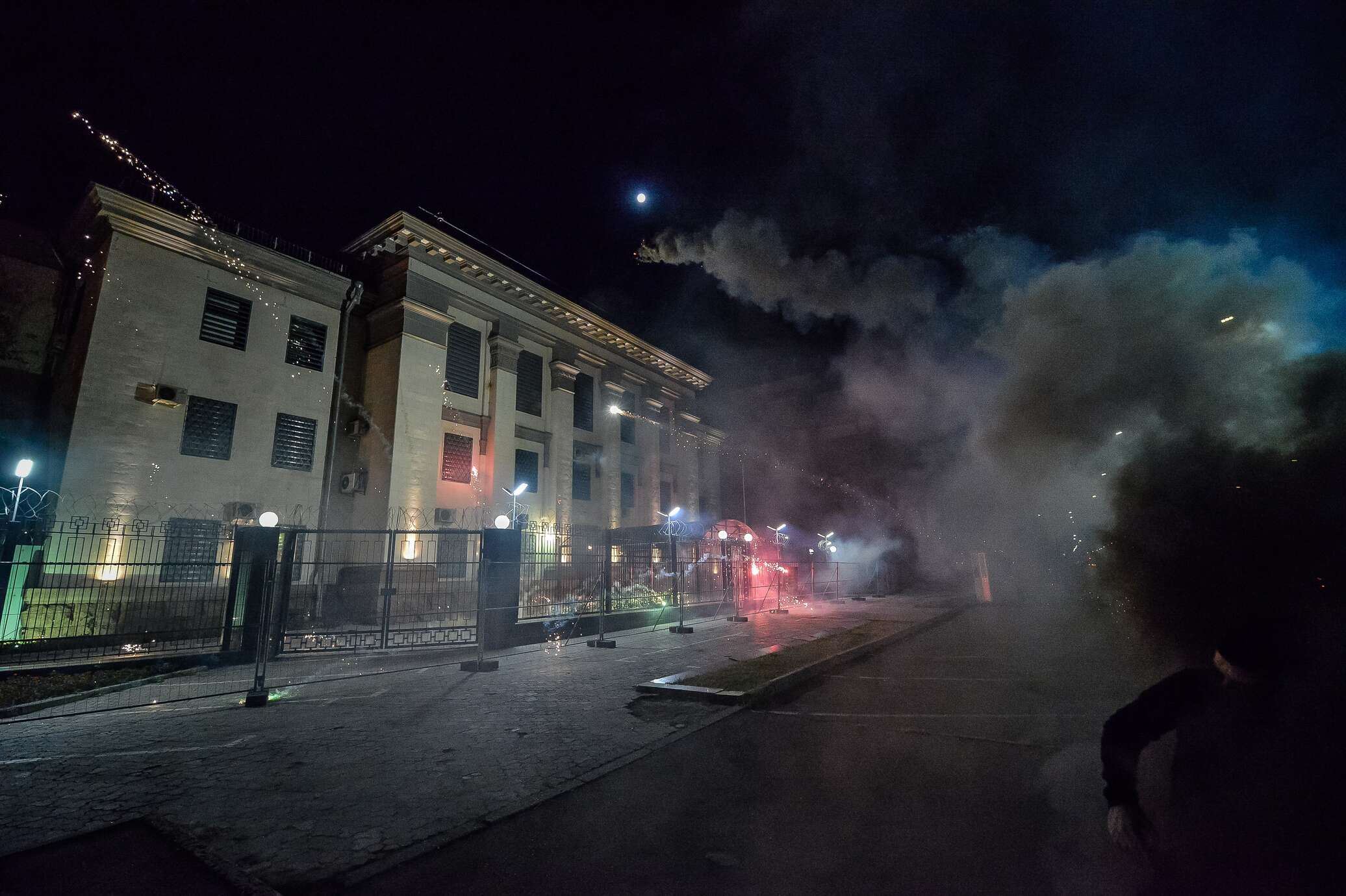 Посольство России в Киеве регулярно подвергается атакам со стороны местных радикалов и националистов. У здания диппредставительства не раз проходили акции ультраправых, которые заканчивались беспорядками.