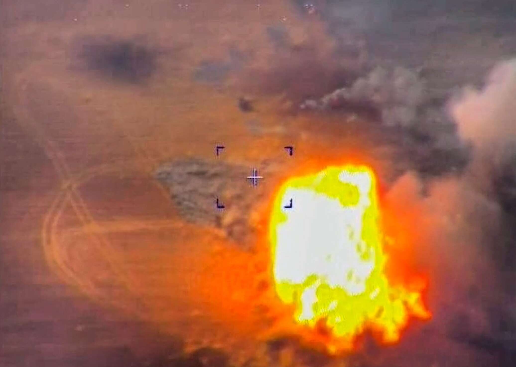 На опубликованной министерством видеозаписи огневая позиция, состоящая из трёх гаубиц и их тягачей, полностью уничтожается при нанесении российскими военными удара высокоточным оружием.