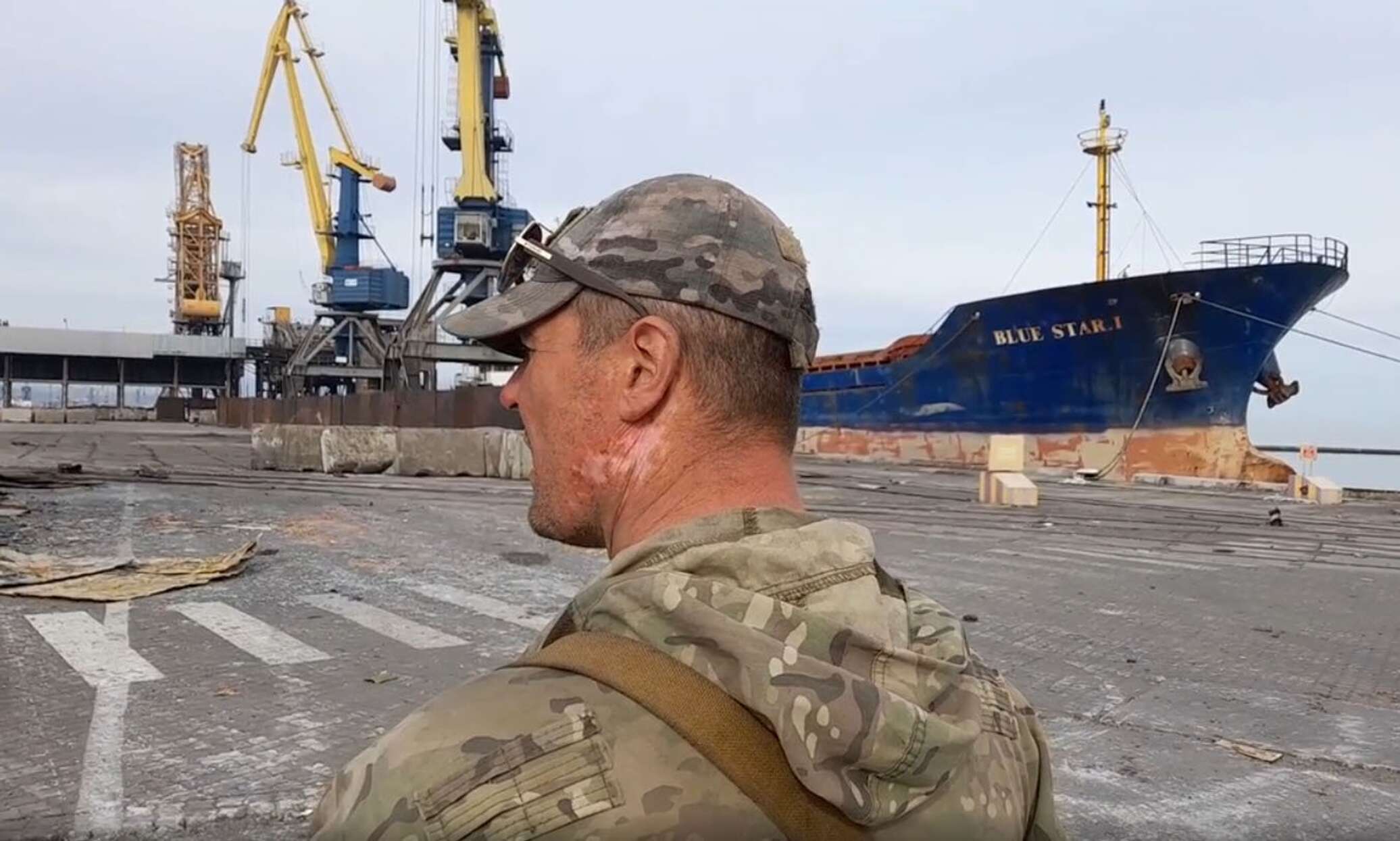 В Мариупольском порту, в той части, что уже освобождена, солдаты и офицеры внутренних войск МВД ДНР смотрят на то, как по дальней цели стреляет танк. «Порт — это крепость, столько бетонных, железобетонных конструкций, как будто специально для войны строили», — комментируют они работу танкистов.