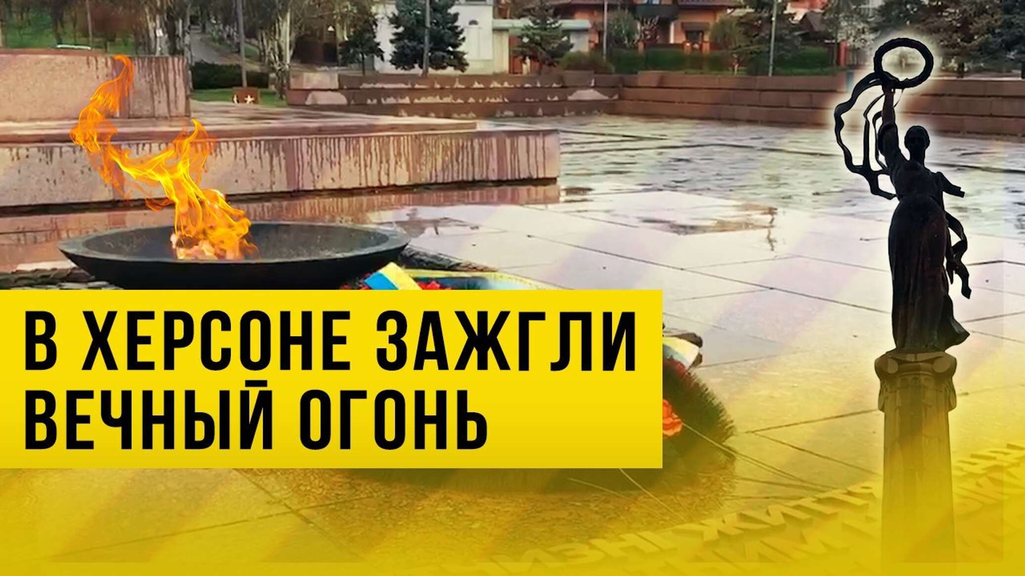 День освобождения Херсона (отмечается 13 марта) также проходил без Вечного огня. На этой неделе огонь снова зажгли. Памятники в Херсонской области приводят в порядок сотрудники Росгвардии. По словам Росгвардейцев, в целом памятники в хорошем состоянии, местные жители заботились о них по мере собственных сил.