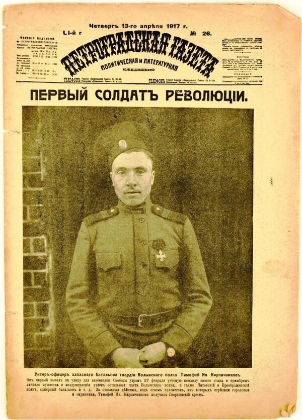 …С этим человеком это могло случиться в любой день 105 лет назад после 25 октября (7 ноября по новому стилю) 1917 года, когда он бежал из охваченного большевистским октябрьским переворотом Петрограда. На Дон, где зарождалась белая гвардия — уже появились первые добровольческие офицерские части……«Прекра-а-асно, прекра-а-асно», — растягивая слова и не глядя на посетителя, довольно молодого подпрапорщика, произнес полковник Александр Кутепов. Все знали: так он говорит, когда сильно возбужден, даже взбешен. «Наряд! Уведите прапорщика», — коротко приказал полковник вбежавшему адъютанту. Посетитель тоже заволновался, побледнел: «Почему вы меня задерживаете?» — «Сейчас увидите, — бросил Кутепов и подал сигнал прибывшему наряду, — расстрелять!». Офицера вывели на улицу, и через мгновение там раздались выстрелы. Нестройный залп всё и решил……Так закончил свои дни на земле «первый солдат революции» Тимофей Иванович Кирпичников. Сейчас уже даже в воспоминаниях Кутепова не указана точная дата, когда он приказал расстрелять странного визитера. Но знать об этих событиях не мешало бы. Хотя бы в назидание потомкам и в дни очередной годовщины так называемой Великой Октябрьской социалистической революции, с последствиями которой собирался бороться расстрелянный. Он был одним из первых ее знаменитых, но теперь полузабытых «детей», кого она сожрала……И, казалось бы, — парадокс. Офицер, будущий белогвардеец расстреливает другого офицера. Да еще и за то, что тот хочет бороться с «заговорщиками, захватившими власть в Петрограде», с будущими «красными». Однако никакого парадокса тут нет. Полковник Кутепов расстреливал прапорщика Кирпичникова как предателя того дела, в которое верил сам и которому потом отдал всю жизнь. А в народе о таких, как Кирпичников, иногда недобро говорят: собаке — собачья смерть……Заочно Кутепов и Кирпичников познакомились еще в феврале 1917 года. Во время, когда император Николай II записал в дневник: «Кругом измена и трусость, и обман!» В тот же день, 2 (15) марта 1917 года, государь отрекся от престола. А по всей его бывшей империи начали расходиться открытки с изображением «первого солдата революции» — довольно туповатого на вид молодого унтер-офицера с Георгиевским крестом 4-й степени на груди. Это был Кирпичников. И попадись ему Кутепов в то время, может быть, все обернулось бы иначе — с точностью до наоборот: расстреляли бы без суда и следствия Кутепова…Но не судьба. Александр Кутепов еще станет генералом от инфантерии (то есть полным генералом). Белым. И войдет в историю как один из самых рьяных сторонников восстановления монархии в России. Он выведет из России остатки разбитых белых армий генерала Петра Врангеля и на турецком острове Галлиполи даже какое-то время будет существовать странная «страна Кутепия», где бывшие белогвардейцы будут пытаться сохранить и воинскую честь, и человеческое достоинство беглецов, и порядки той России, которая их отвергла. Потом генерал Кутепов возглавит Русский Общевоинский Союз (РОВС), в 1930 году будет тайно похищен чекистами прямо в Париже и умрет по пути из Марселя в Новороссийск прямо в трюме перевозившего его советского парохода. По слухам — от передоза морфия, которым генерала накачали при похищении доблестные выученики Феликса Дзержинского…А в феврале 1917-го, прибыв прямиком с фр