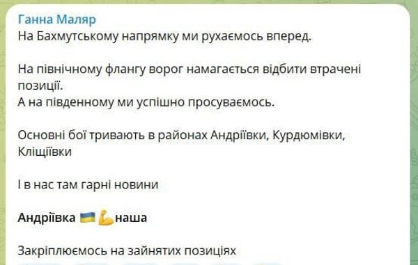 Маляр передумала и исправила свой пост, Андреевку ВСУ всё-таки не взяли