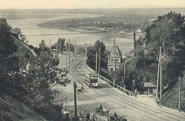 Следующей альтернативой конке стал канатный трамвай. Под улицей прокладывался двигавшийся с постоянной скоростью канат, за который вагоны цеплялись, дабы разогнаться, и отцеплялись для остановки. Такое чудо техники было впервые построено в 1872 году в Сан-Франциско и сохранилось там практически в первозданном виде до наших дней. Такой транспорт был идеально чистым, но слишком неудобным из-за чрезмерной технической сложности. Стрелки и пересечения фактически оказывались неработоспособны. Лишь в 1905 году в Киеве появился фуникулёр, совместивший в себе и канат, и электричество. Но в этом деле Нижний Новгород и Одесса обогнали «мать городов русских».