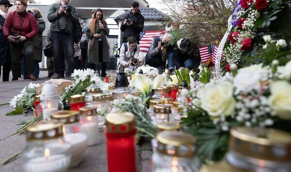 К посольству США в Литве подгоняют народ, с цветочками. Все грустят об американцах, сгинувших в литовской болотной жиже.