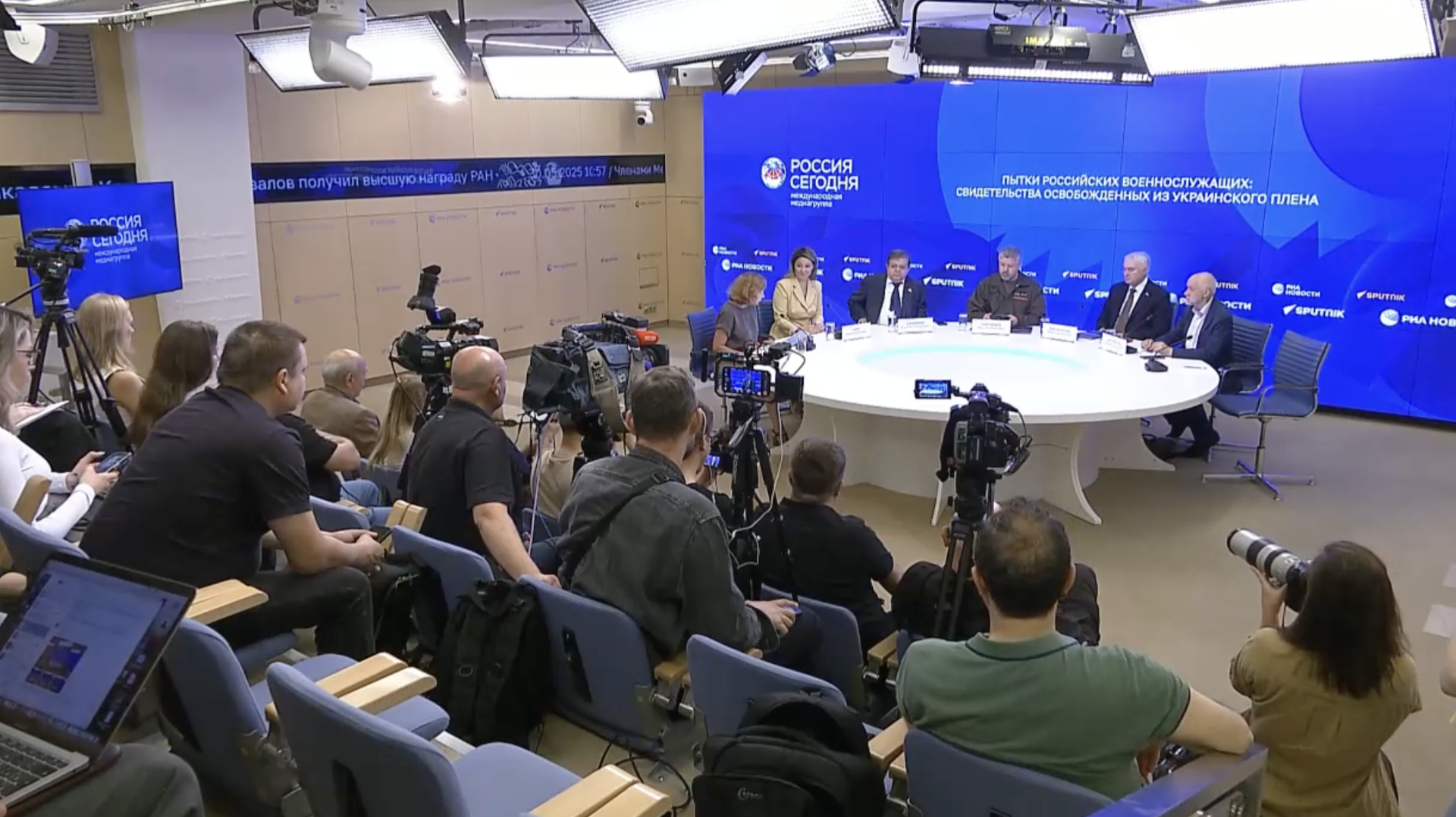 Приматывали клеммы сварочного аппарата и били током. Простреливали колени и ломали ребра. Натравливали собак и избивали битами. Вот, что рассказали вызволенные из украинского плена российские военнослужащие отечественным правозащитникам о том, что с ними делали в украинских лагерях. С докладом о преступлениях Украины по отношению к военнопленным выступил в пресс-центре МИА "Россия Сегодня" Максим Григорьев, член общественной палаты России и председатель Международного общественного трибунала по преступлениям украинских неонацистов.Группа Григорьева опросила около 200 российских военнослужащих, которых вернули домой в результате последнего обмена по формуле "тысяча на тысячу". Общественник показал видеозаписи общения с военными, привел рассказы потерпевших.Один мужчина рассказал, как в плену ему накрывали лицо тряпкой и лили воду - топили. Потом нагревали трубу, прижигали спину и ноги. Обожженную кожу сдирали, рану присыпали солью.Другой мужчина рассказал, как с его пальца пытались снять обручальное кольцо. Оно не слезало, и тогда безымянный палец просто сломали, а кольцо сдернули."Потом привезли в свое расположение под Покровском. Раздели догола, надели мешок на голову, вывели во двор. И прострелили ноги с автомата Калашникова насквозь", - рассказал он.Это произошло в начале декабря. Мужчину с простреленными ногами, раздетого догола бросили на улице. Через сутки его забрали и отвезли в другой подвал, где пытки продолжились. Его били киянкой и молотком, выбили все зубы, кроме одного. Два зуба, рассказал он, ему выдернули плоскогубцами, бросили в стакан, фотографировали и кому-то эти снимки отправляли.В августе 2025 года на Украине открыли лагерь для российских военнопленных во Львовской области под названием "Запад-4". По информации Григорьева, из 800 военнопленных 90% заявляли о пытках. Причем каратели не задавали никаких вопросов, даже не пытались что-либо выяснить. Пытки устраивали ради удовольствия - например, некий украинский военнослужащий под позывным "Фунтик" заставлял пленных учить гимн Украины. Над теми, кто не запоминал стишки на мове, он систематически издевался."Одного хохла с прутом с бородой не забуду. Он меня бьет прутом по груди и шее, лупит и улыбается. Он счастлив", - рассказал военнослужащий."Привезли на подвал. К нам специально обученный хохол ездил. Позывной его "Фунтик". Руками, ногами, шлангами, полипропиленными трубами, электрошокером нас пытал. Первые месяцев пять через день ездил. От пыток получал несказанное удовольствие. Пытался нас "воспитывать". Говорил: "учите гимн украинский, учите стихи украинские". На бумажечке на украинском языке раздавал. Если не запоминали, пытал", - рассказал другой военнослужащий.Пытали особо изощренно. Раздевали ниже пояса, стягивали гениталии проволокой. Били током в течение десяти минут за ушами, цепляли клеммы к груди. Кроме этого людей заставляли выполнять бессмысленную работу. Например, утрамбовывать зимой снег и переносить с места на место, что-то откапывать и закапывать, перетаскивать мусор."Понимаете, это однозначно свидетельства того, что это делалось не просто отдельными садистами. Это целая система, их огромное количество сейчас в ВСУ, в СБУ. Это приказ, это система специального умерщвления людей, террора, чтобы лишить всего человеческого. Это специально делается, 