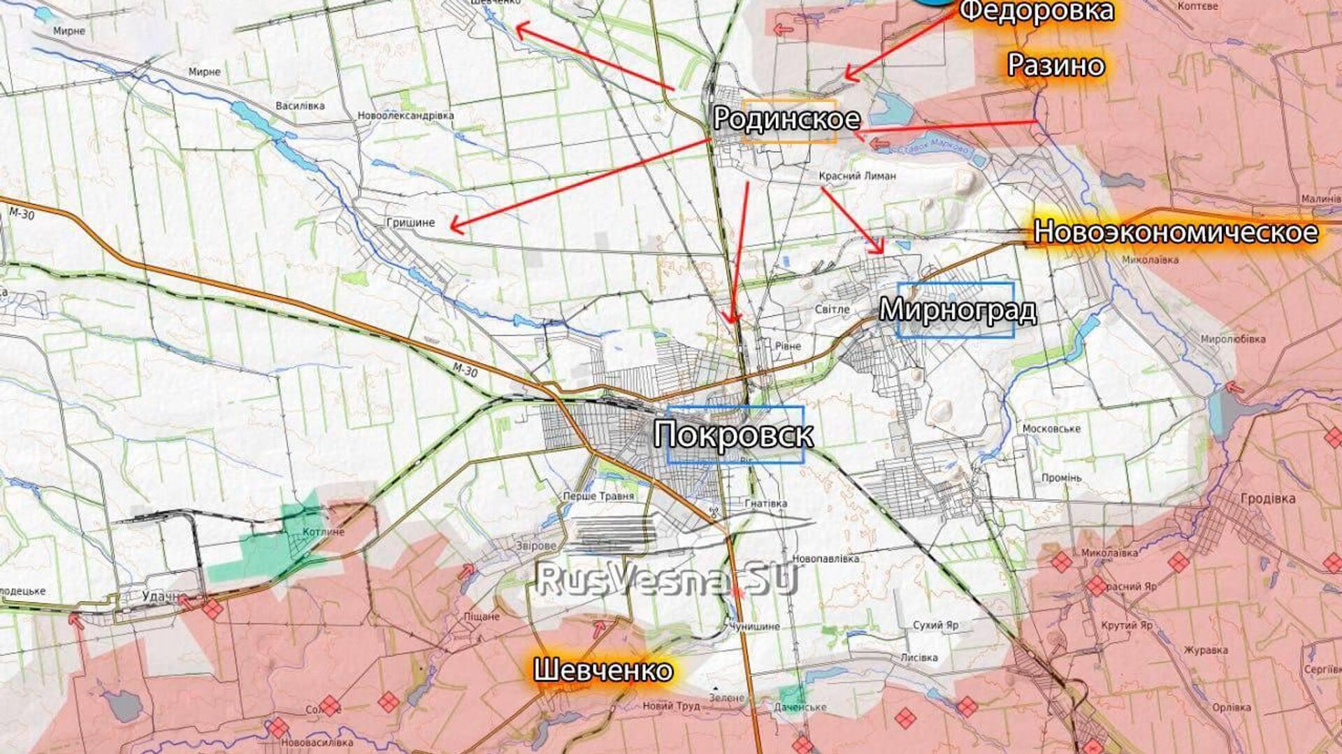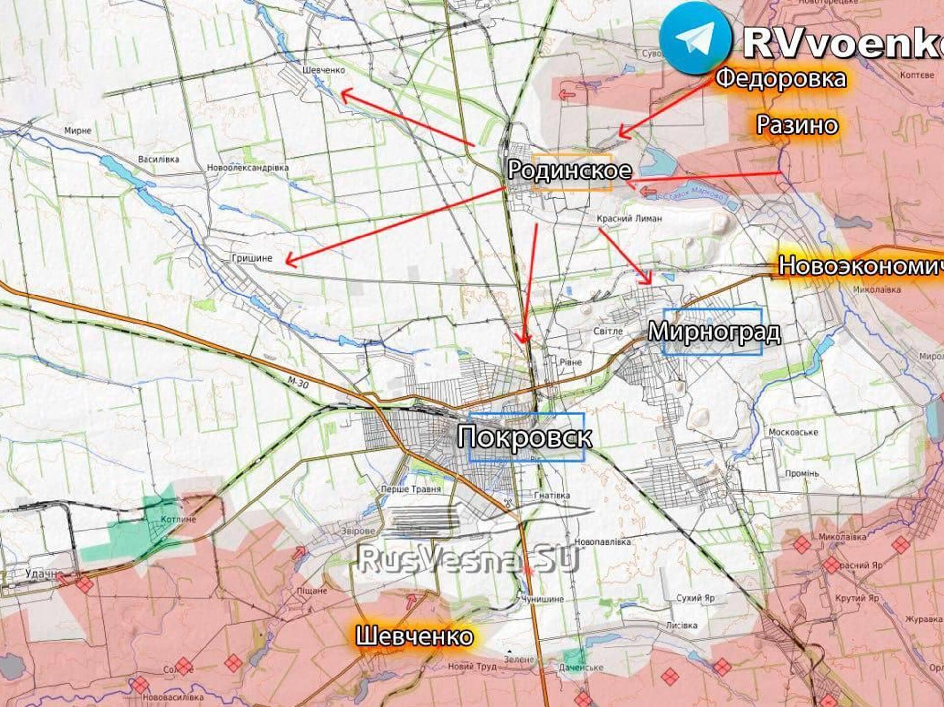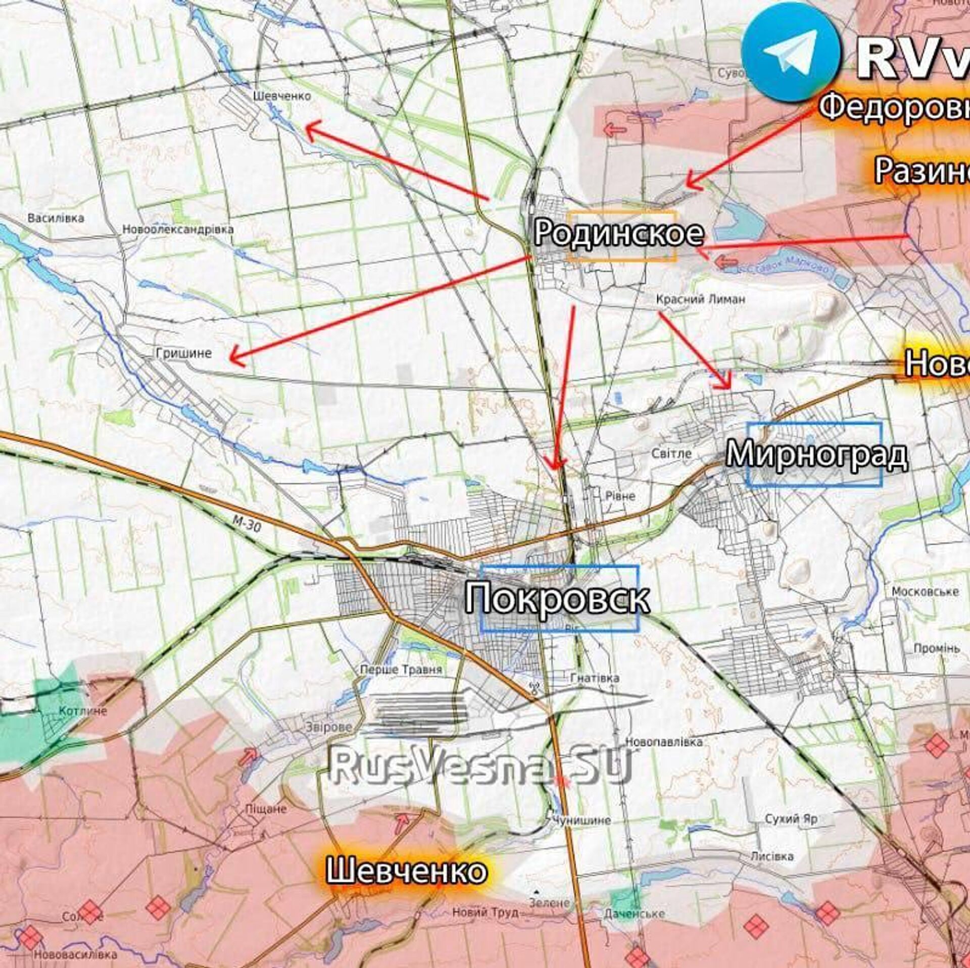 «Закрепившись в Родинском, ВС РФ начнут бить по Гришино, нарушая логистику ВСУ. Также возможно наступление в направлении Шевченко», - пишет ресурс, работающий на ГУР Минобороны Украины.