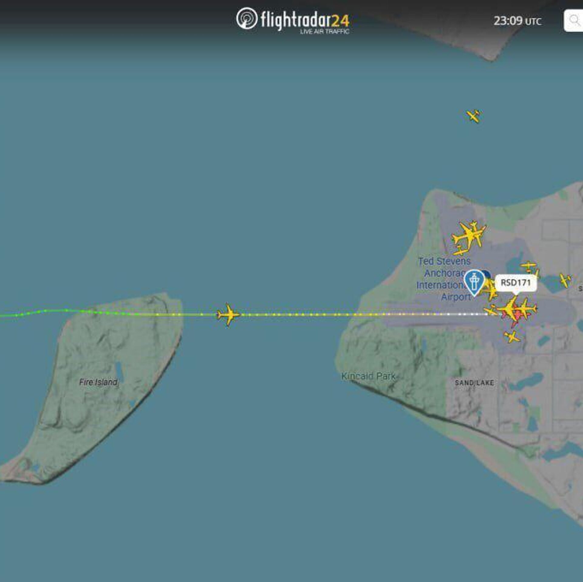 Первый самолёт Ил-96-300, вылетевший из аэропорта "Внуково", приземлился в аэропорту Анкориджа имени Теда Стивенса на Аляске в районе 17:48 мск.