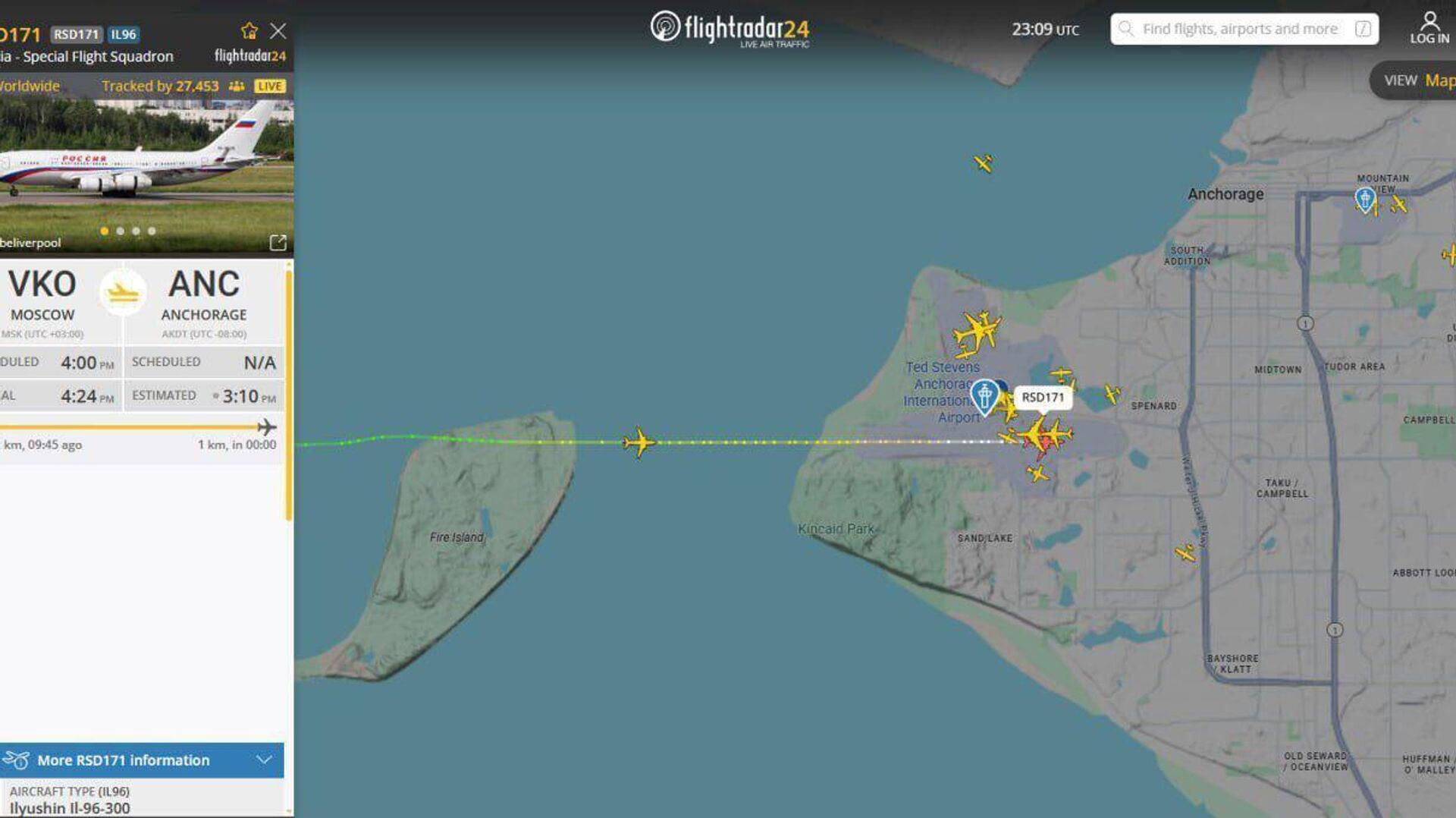Следили более 18 тыс. человек: самолëт специального лëтного отряда "Россия" Ил-96-300 прибыл в Анкоридж