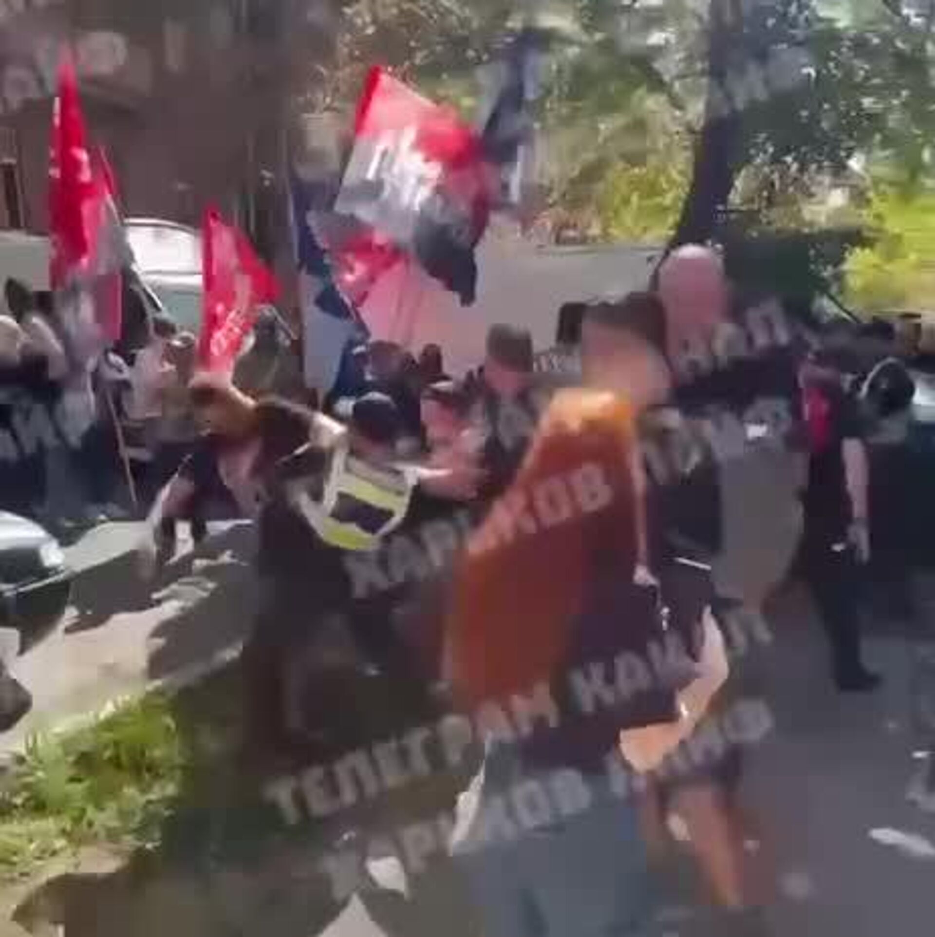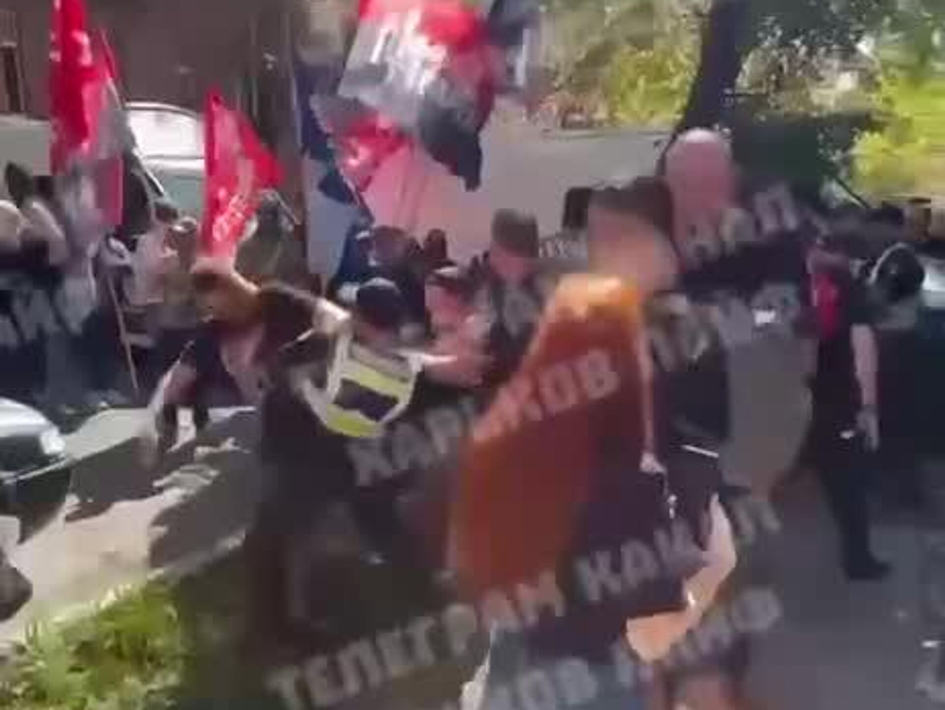 В Харькове группа нацистов с флагами «Правого сектора»* пыталась прорваться к участникам марша ЛГБТ**«Харьков-прайд», их остановила полиция.