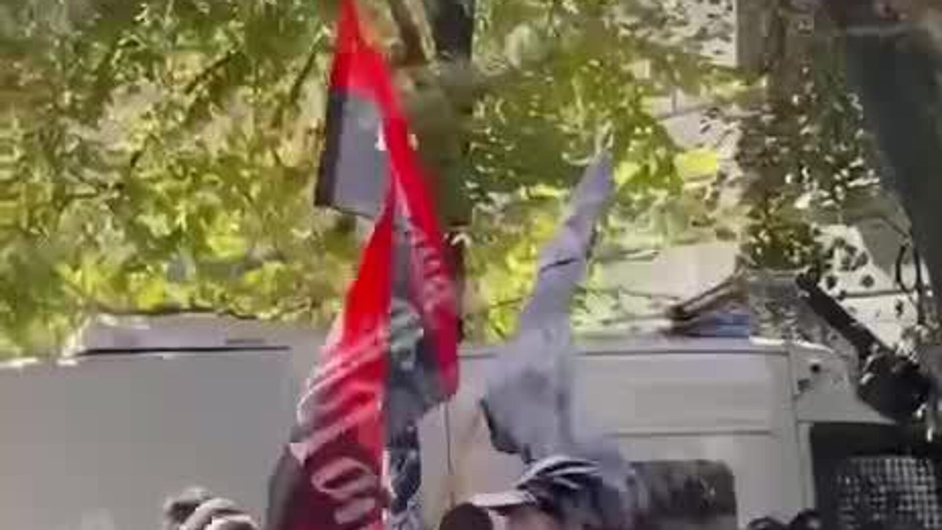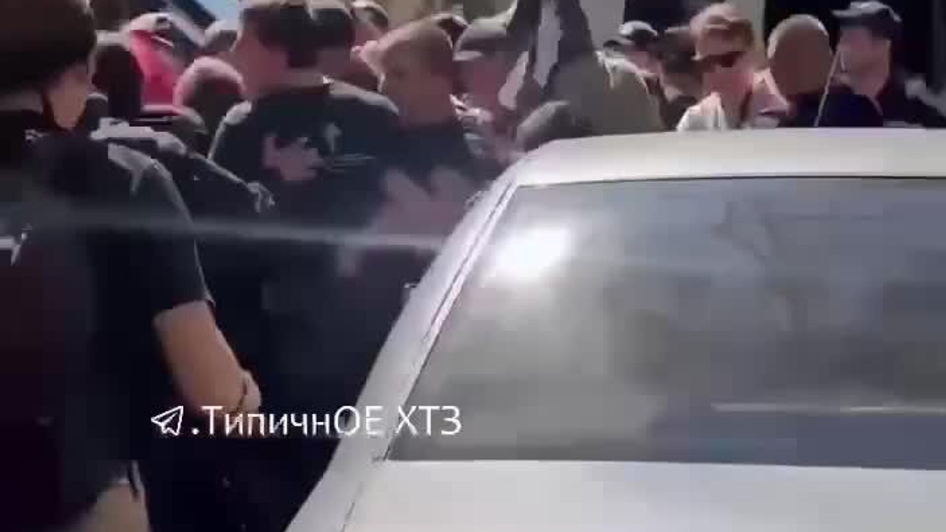 На видео группа нацистов, состоящая преимущественно из молодых людей, пытается сопротивляться полиции. Участники что-то активно выкрикивают и требуют "дать им пройти".