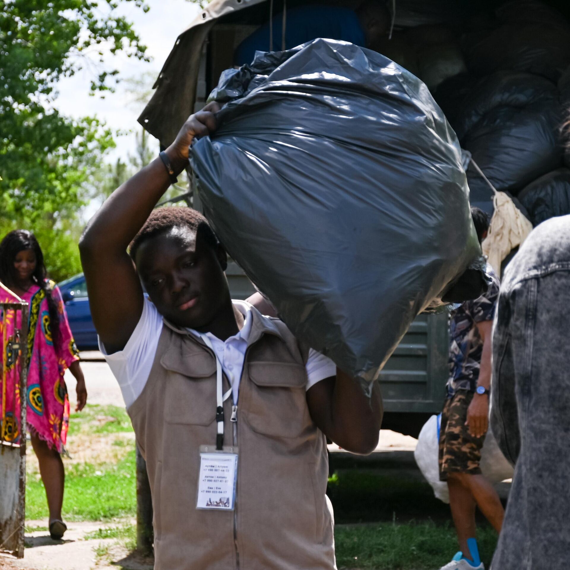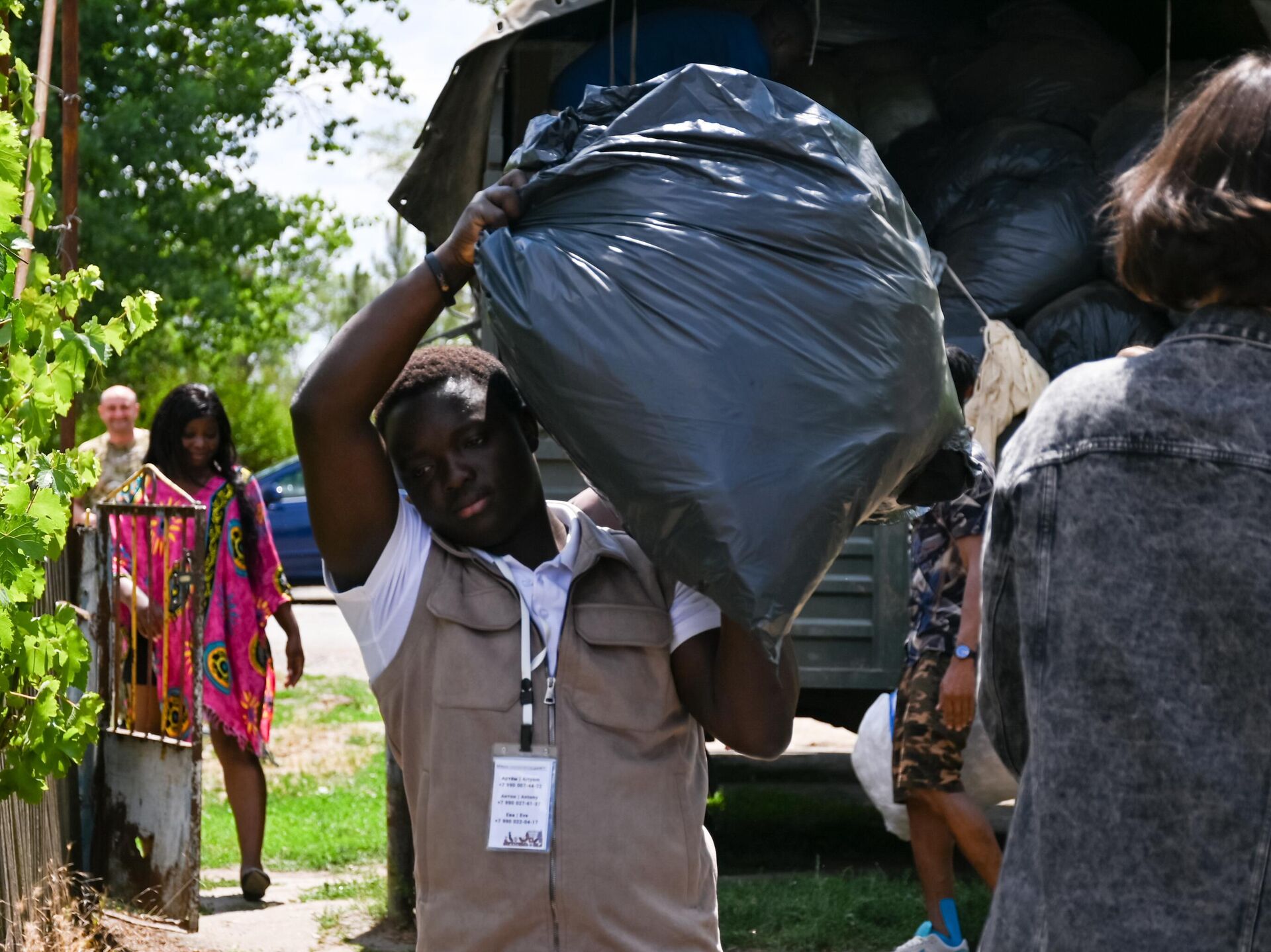 Но, пожалуй, самое интересное и уникальное — это африканские волонтёры, впервые приехавшие в Запорожскую область России. В июле в Бердянске и Мелитополе целый отряд студентов из Чада, Камеруна, Кот-д’Ивуара и Того несколько недель помогал одиноким пожилым людям и многодетным семьям благоустраивать приусадебные участки, строил волейбольную площадку, а также оказывал адресную гуманитарную помощь. Согласно расхожему стереотипу, гуманитарную помощь оказывают Африке, но на самом деле мир стремительно меняется.