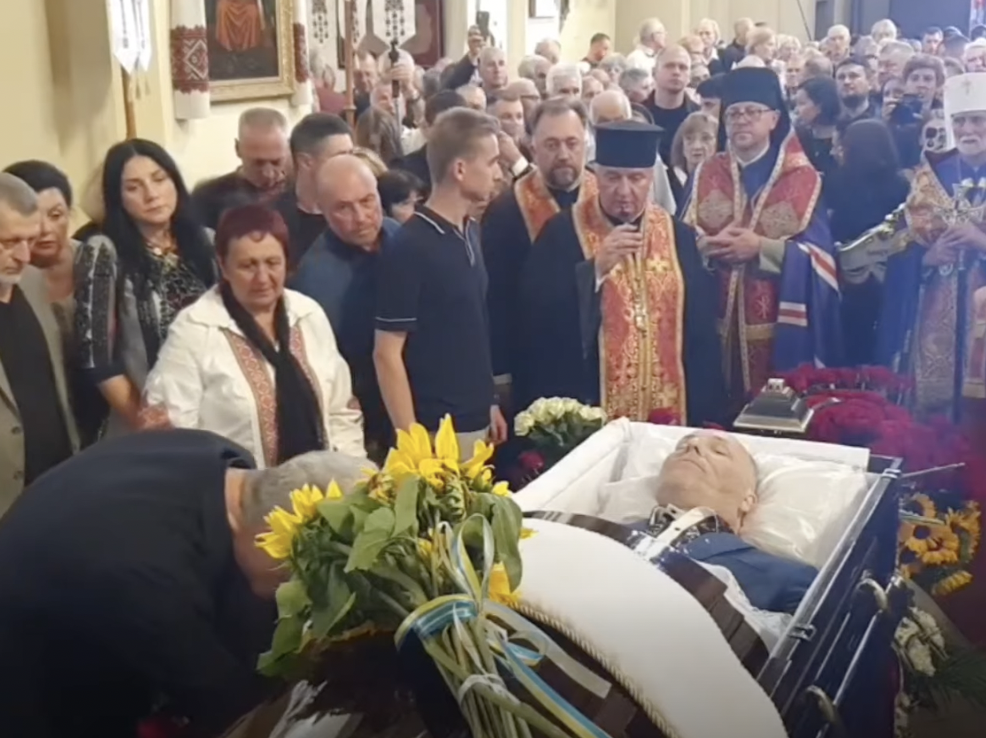На отпевание пришёл Пётр Порошенко* с супругой Мариной, а также его партийные соратники — София Федина и Алексей Гончаренко*. Бывший генпрокурор Украины Юрий Луценко о чём-то шутил с Порошенко, но смеялся сам.