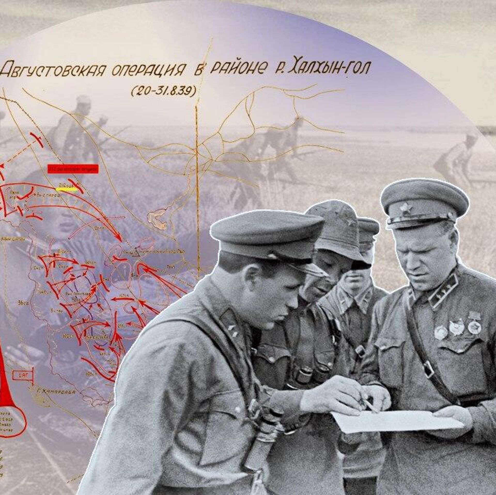 Советские командиры на Халхин-Голе: второй слева замначальника ВВС РККА Яков Смушкевич, в центре - Георгий Жуков, первый справа - член военного совета фронтовой группы Николай Бирюков, второй справа - начальник артиллерийского управления РККА Николай Воронов