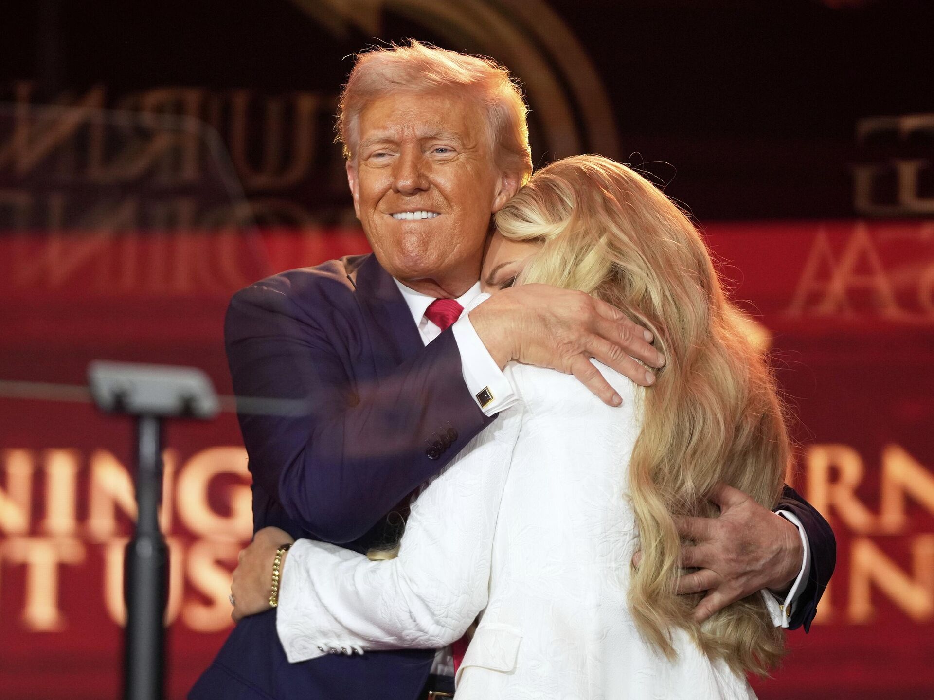 Перед появлением главы государства на сцену поднялся 82-летний певец Ли Гринвуд, чья патриотическая нетленка God bless the USA ("Боже, благослови США") стала неофициальным гимном последней кампании Трампа.