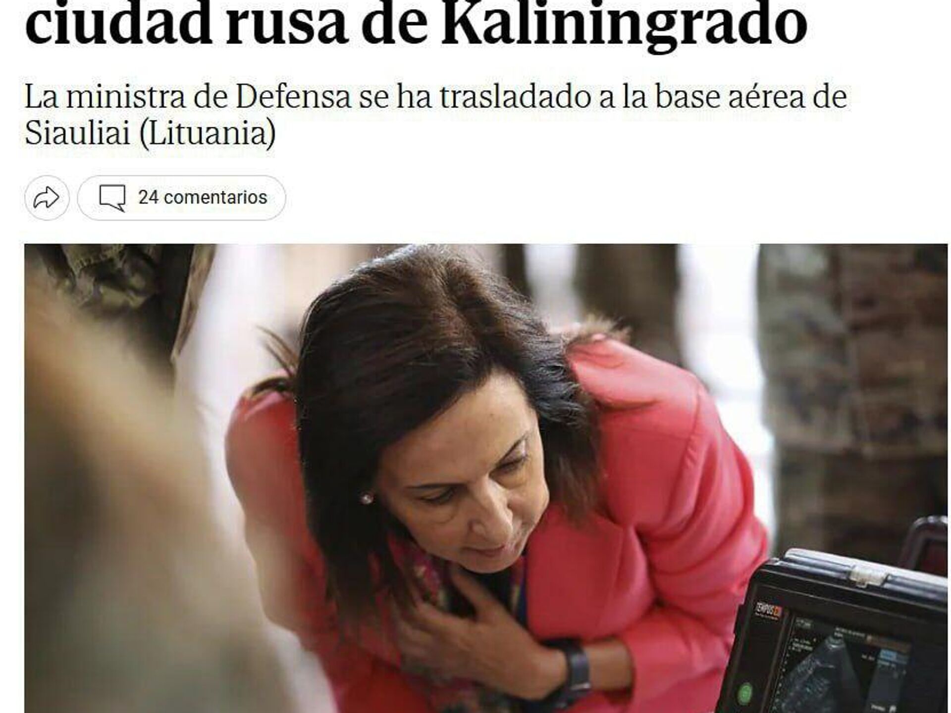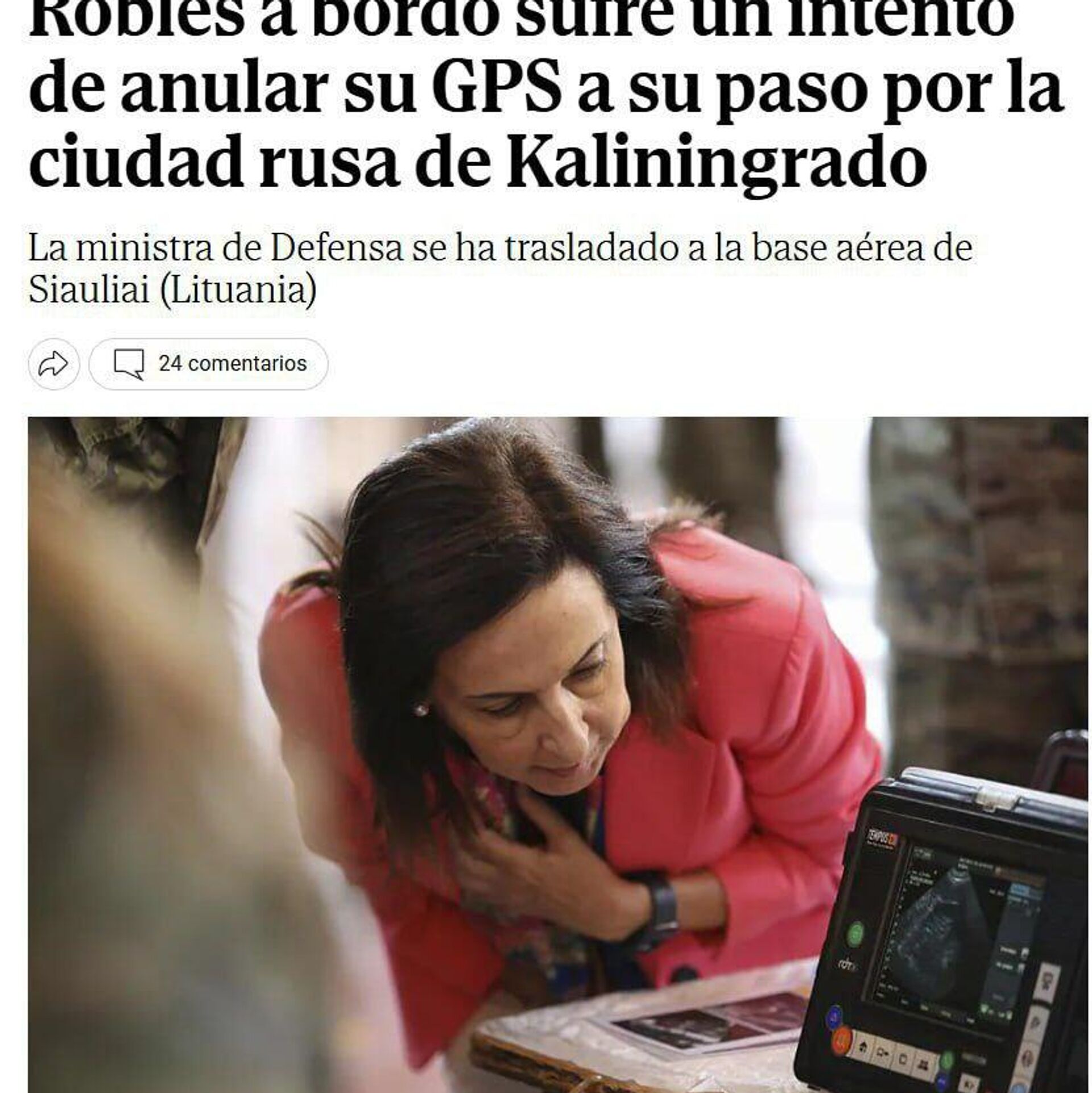 Испанское издание El Mundo распространило непроверенную информацию о том, что самолет министра обороны страны Маргариты Роблес якобы подвергся GPS-атаке во время пролета в районе Калининграда. Об этом сообщил 24 сентября телеграм-канал Украина.ру