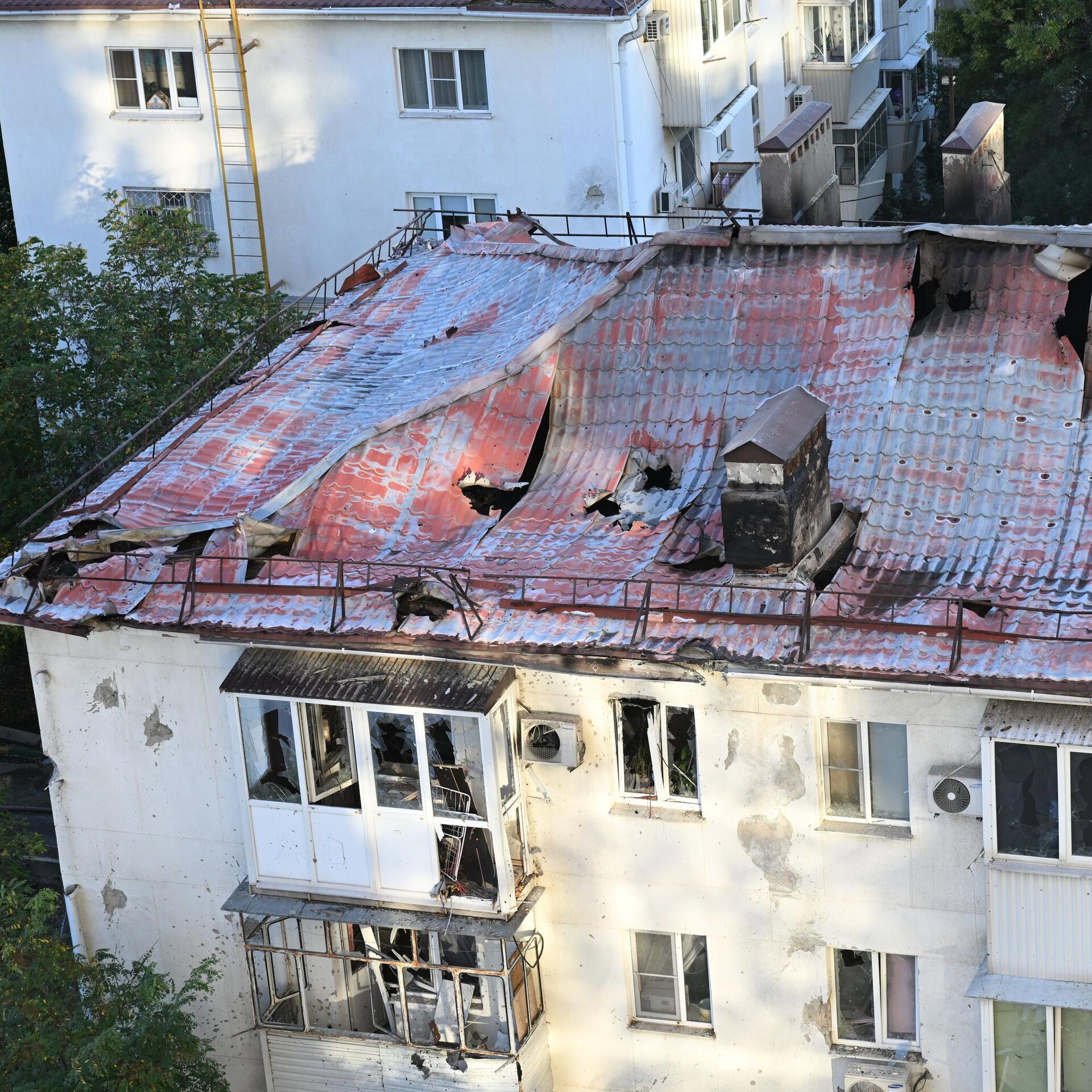 Сообщается, что повреждения получили четыре многоквартирных дома, а также одна гостиница. В одном из домов на улице Шевченко возникло возгорание, которое было ликвидировано.
