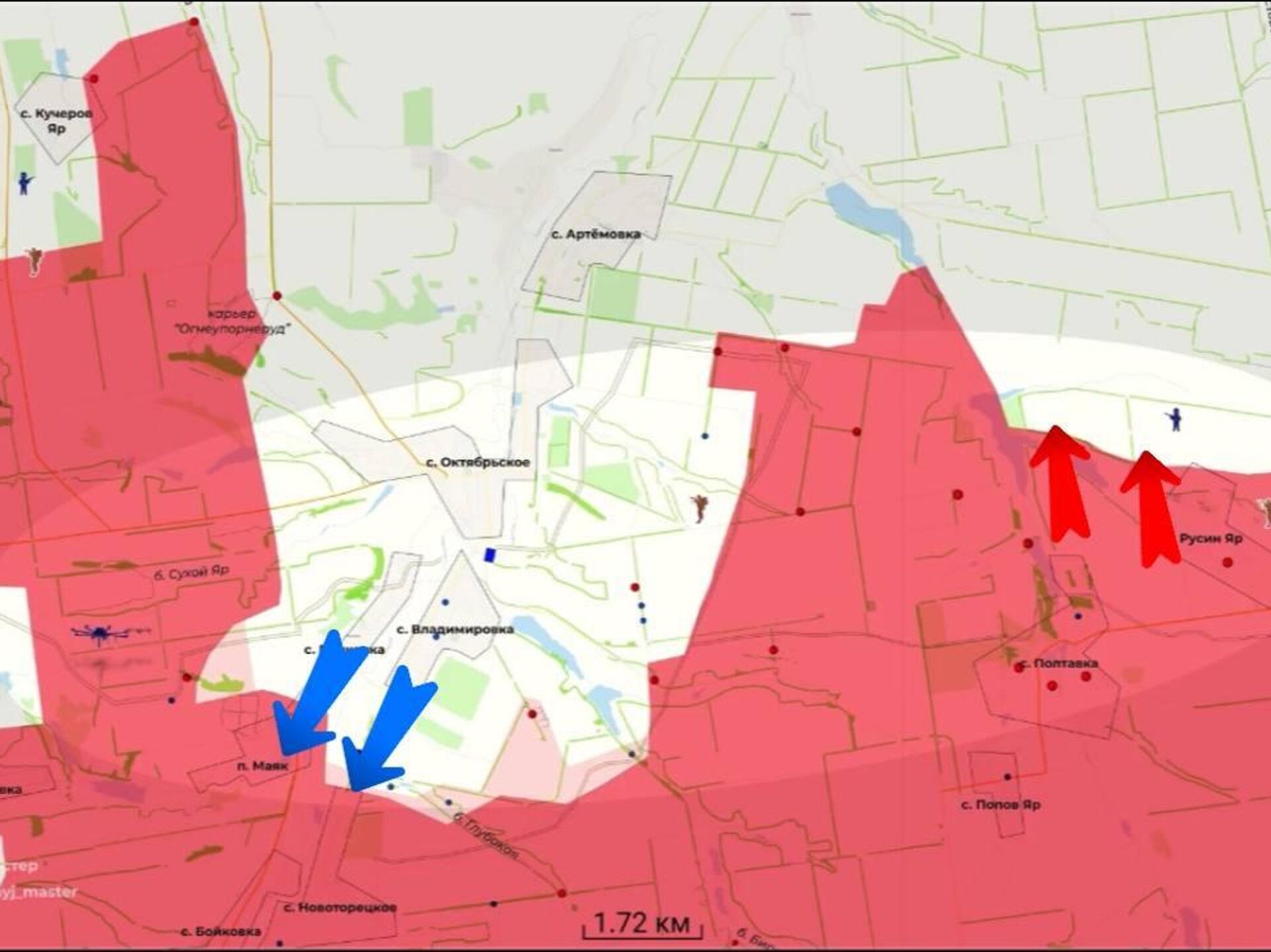 Несмотря на это, западнее Октябрьского подразделения ВС РФ не только успешно отбивают атаки, но и сами продвигаются вперед, улучшая тактическое положение и расширяя зону контроля.