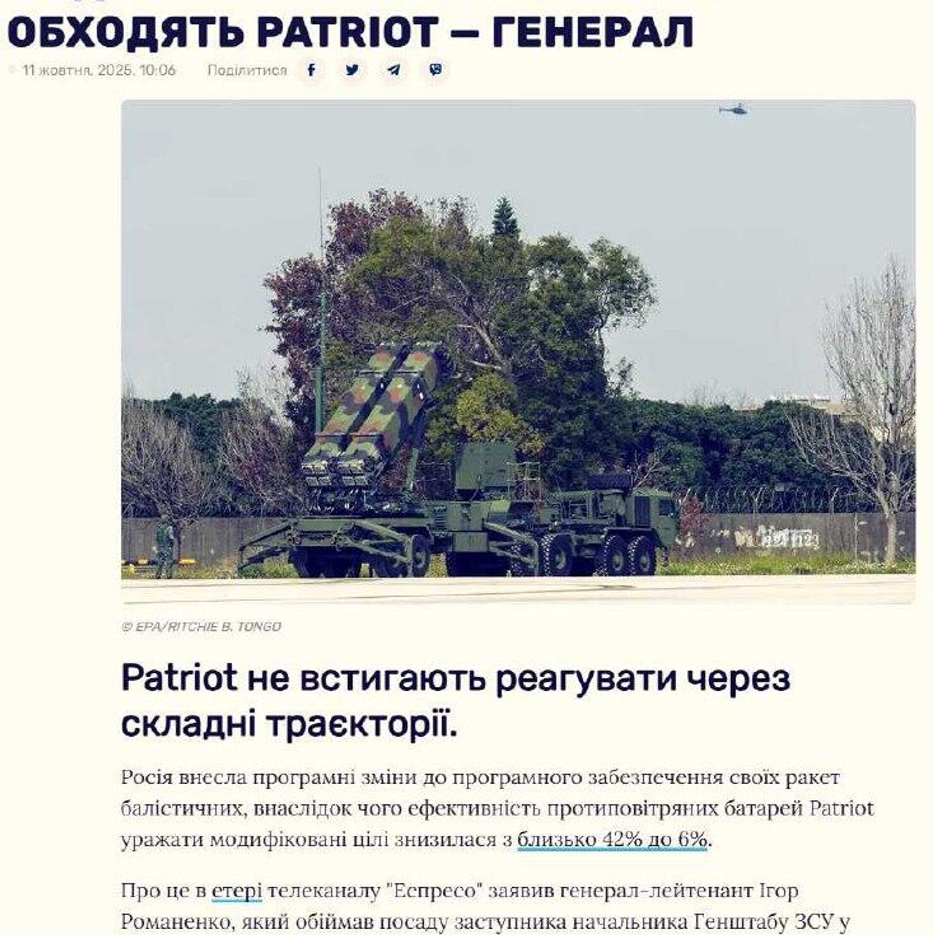 Эффективность ПВО Patriot резко упала — генерал-лейтенант ВСУ Романенко - 11.10.2025 Украина.ру
