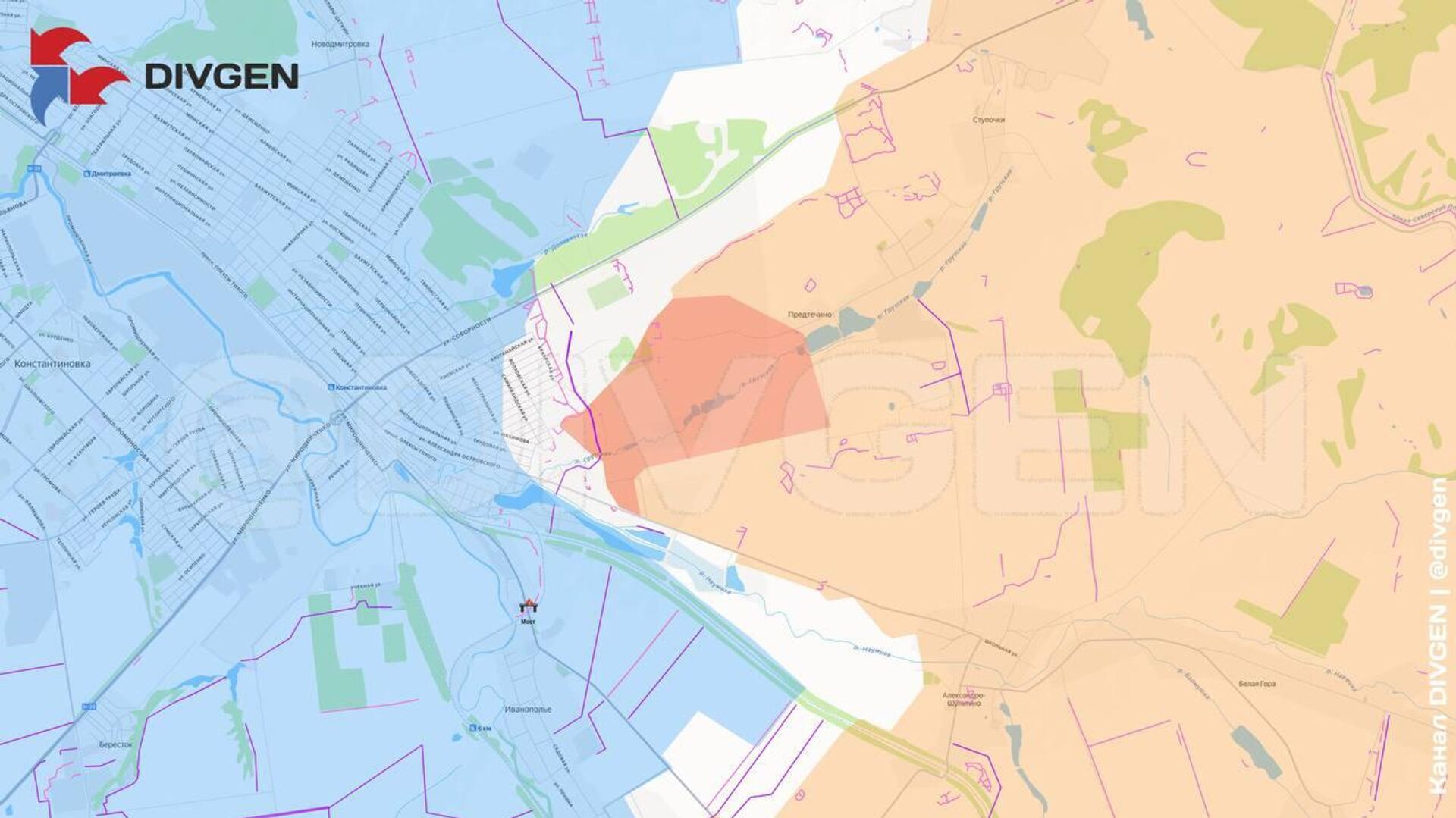 Российские войска заняли первые здания в микрорайоне Сантуриновка на восточной окраине Константиновки, сообщает ТГ-канал "DivGen".