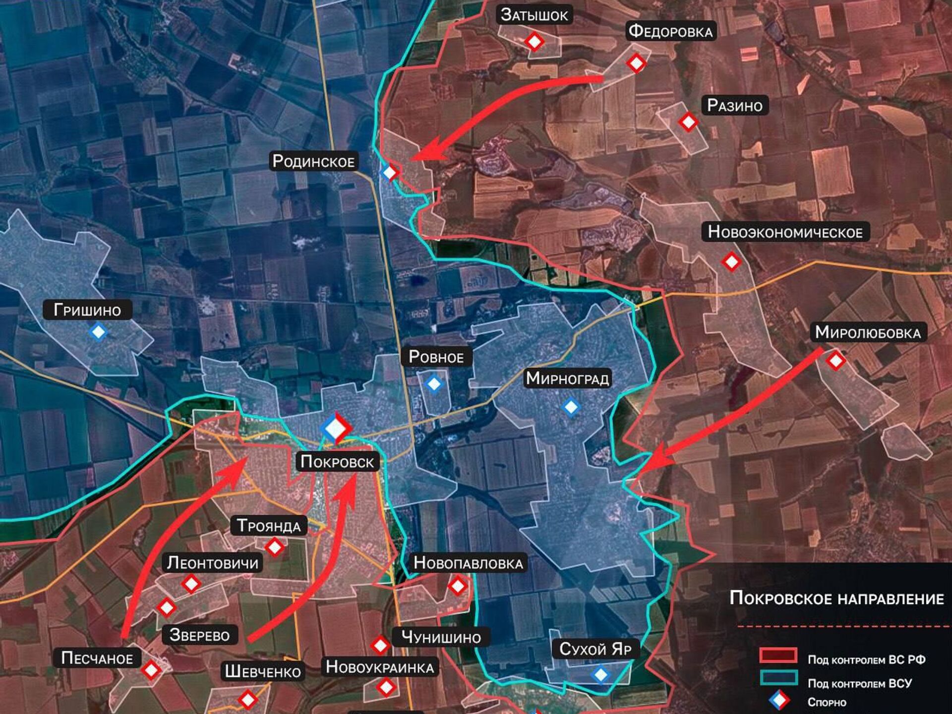 На территориях всё еще есть "серые зоны", где могут скрываться солдаты ВСУ. Такие зоны тянутся от улицы Прокофьева до парка Юбилейный на южной окраине Покровска.