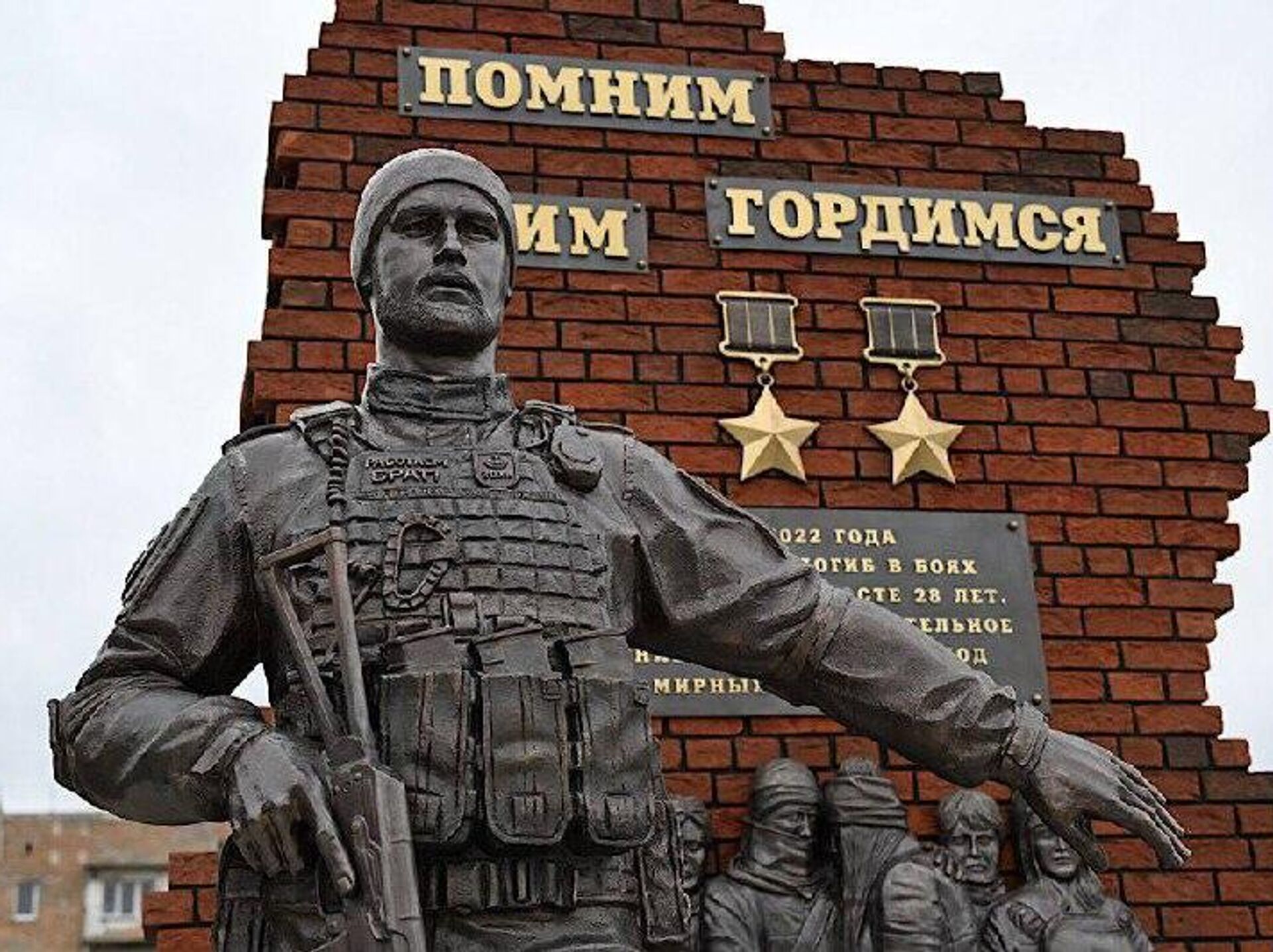 На этом месте 5 марта 2022 года командир отдельного разведывательного батальона «Спарта» гвардии полковник Владимир Жога погиб, прикрывая эвакуацию мирных жителей, в том числе женщин и детей.