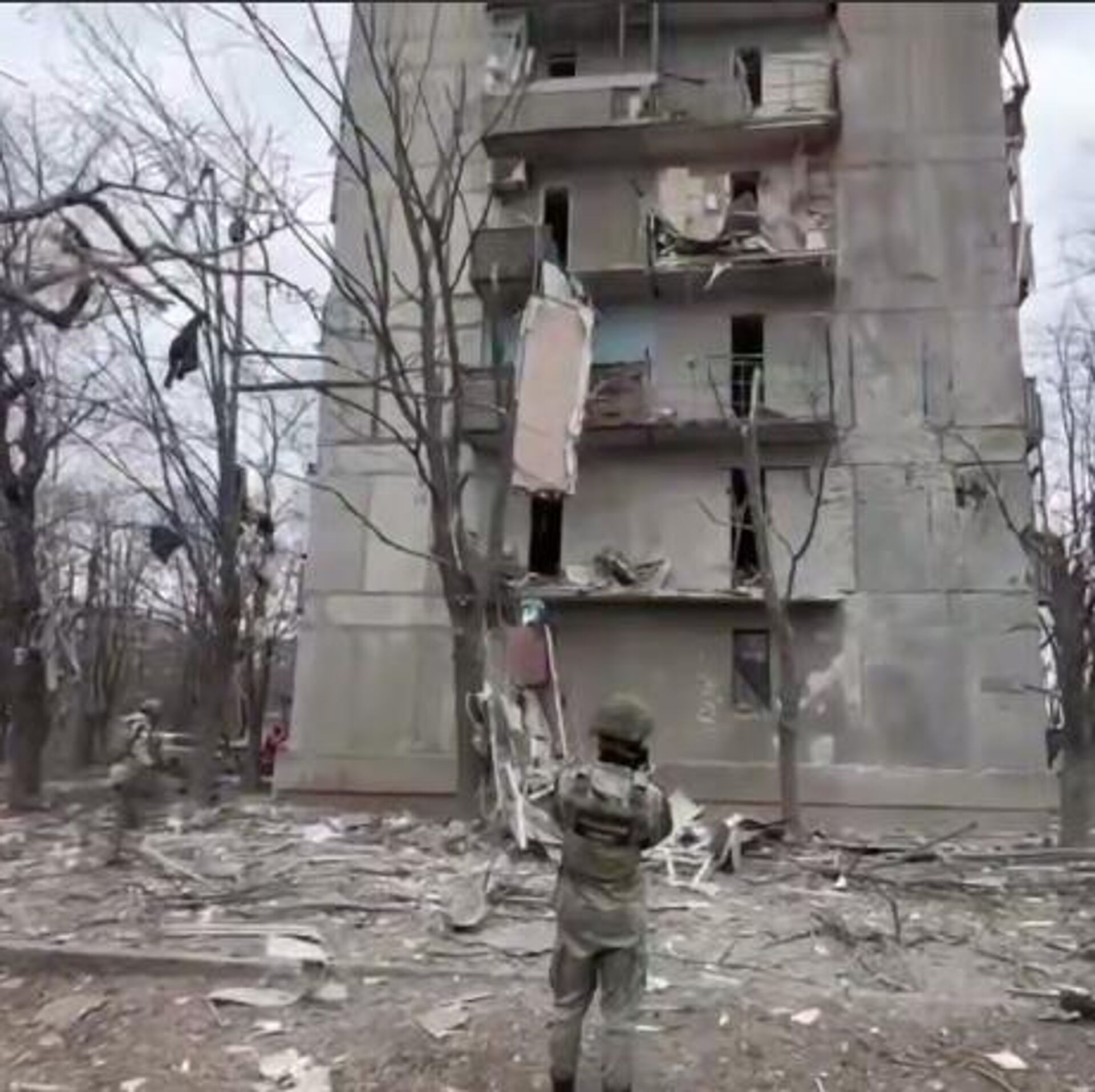 СК РФ опубликовал видеозапись осмотра последствий атаки БПЛА на жилой дом в Горловке.