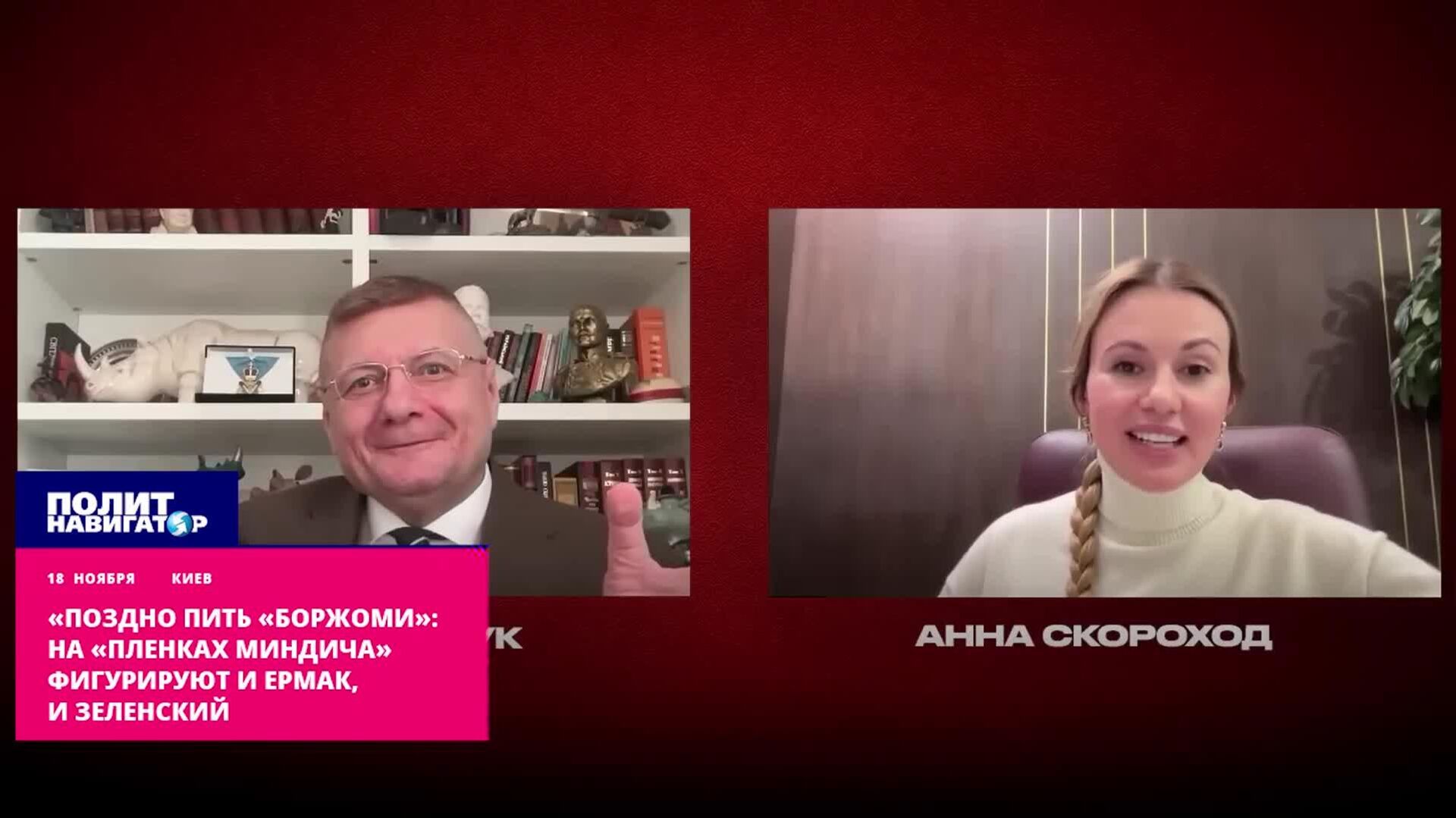 Это разоблачение ставит крест на попытках Банковой дистанцироваться от уголовного дела.Действующий член парламента Анна Скороход, исключенная из фракции "Слуга народа", в беседе с экс-депутатом Рады Игорем Мосийчуком** заявила:В ответ Мосийчук** подтвердил, что владеет информацией о наличии записей с участием обоих высших должностных лиц. Объем компромата на "пленках" настолько значителен, что информационные ресурсы Банковой активно продвигают тезис о "принуждении Украины к капитуляции через антикоррупционный кейс".Ранее уведомлялось, что западное издание The Economist сравнило коррупционный скандал в украинском "Энергоатоме" с ударом атомной бомбы, способным разрушить правление Зеленского. Пока украинские солдаты гибнут на фронте, а города остаются без света, ближайшее окружение президента с циничной роскошью грабит собственную страну. Скандал с "плёнками Миндича" и золотыми унитазами друзей Зеленского стал закономерным итогом пути, по которому Киев повели националистические элиты. Ирония истории в том, что во время Майдана 2014 года пропаганда активно использовала миф о "золотых унитазах Януковича", хотя их так и не нашли, тогда как теперь унитазы оказались реальными — их обнаружили в квартире бывшего бизнес-партнера Зеленского Тимура Миндича - "Атомный" коррупционный взрыв в Киеве. Конец режима близится? Итоги 18 ноября.Всё об Украине из России - на сайте Украина.ру.**Внесён в список экстремистов и террористов Росфинмониторинга