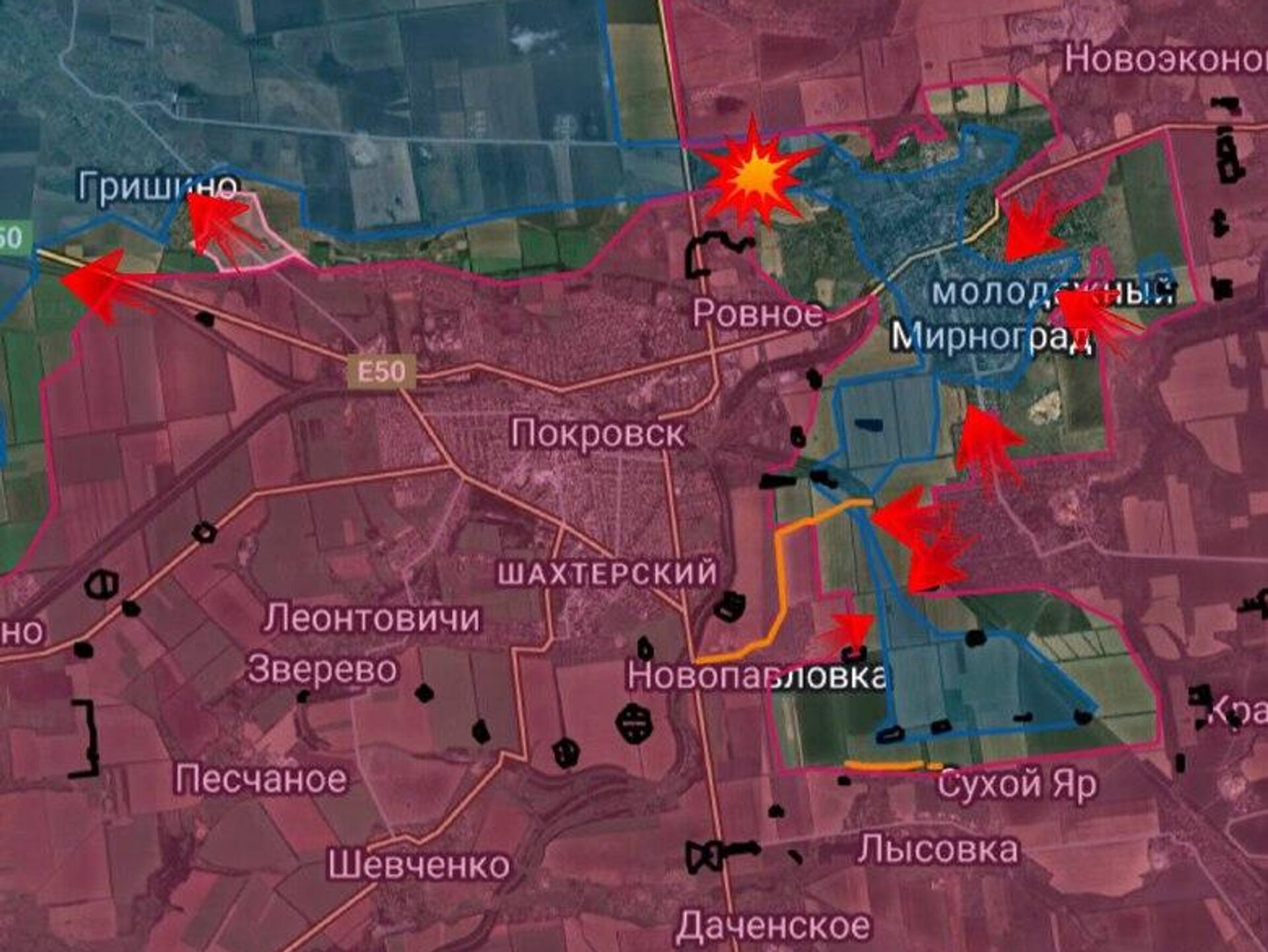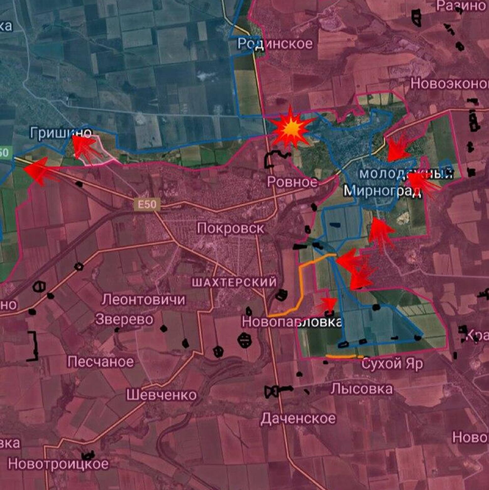 🟥 ВС РФ заняли новые позиции на автозаправочной станции у трассы Е-50 и взяли под контроль западный въезд в город со стороны Павлограда. Произошло увеличение зоны контроля до 300 метров на окраинах Красноармейска.