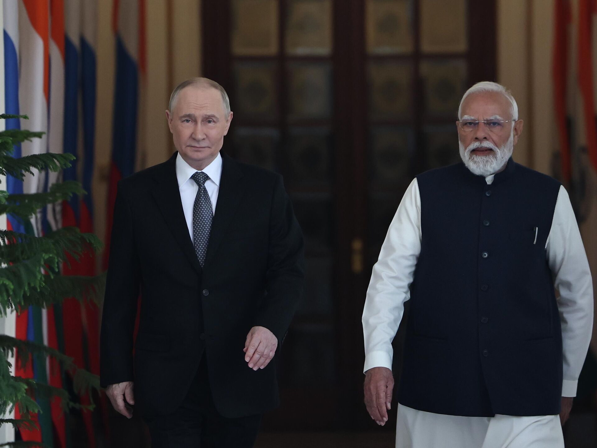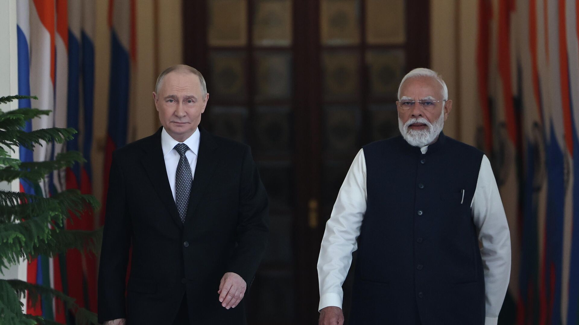 По итогам переговоров в Дели они вышли к журналистам.Накануне Путин прибыл в Индию с двухдневным государственным визитом. В пятницу в Хайдарабадском дворце в Дели состоялись российско-индийские переговоры на высшем уровне.Ранее в пятницу кандидат исторических наук, доцент кафедры международных отношений и внешней политики дипломатической академии МИД РФ и бывший посол РФ в Непале Сергей Величкин указал, что визит президента РФ в Индию является свидетельством особого стратегического партнерства Москвы и Нью-Дели в период становления многополярного мира."Естественно, это очень важное международное событие. Это визит, который относится к стратегическому партнерству, мы его называем особо привилегированным стратегическим партнерством с 2010 года, которое скорее строит многополярность или полицентричность в международных отношениях", - заявил он.Отношения двух стран, по мнению эксперта, почти не имеют "нулевых тем": по каждому аспекту двусторонней повестки между Москвой и Нью-Дели ведется тесное взаимодействие.Владимир Путин прибыл на церемонию старта вещания RT India. Подробнее — в материале Путин прибыл на церемонию старта вещания RT India, США могут выйти из НАТО. Главное к этому часу.Всё об Украине из России - на сайте Украина.ру.