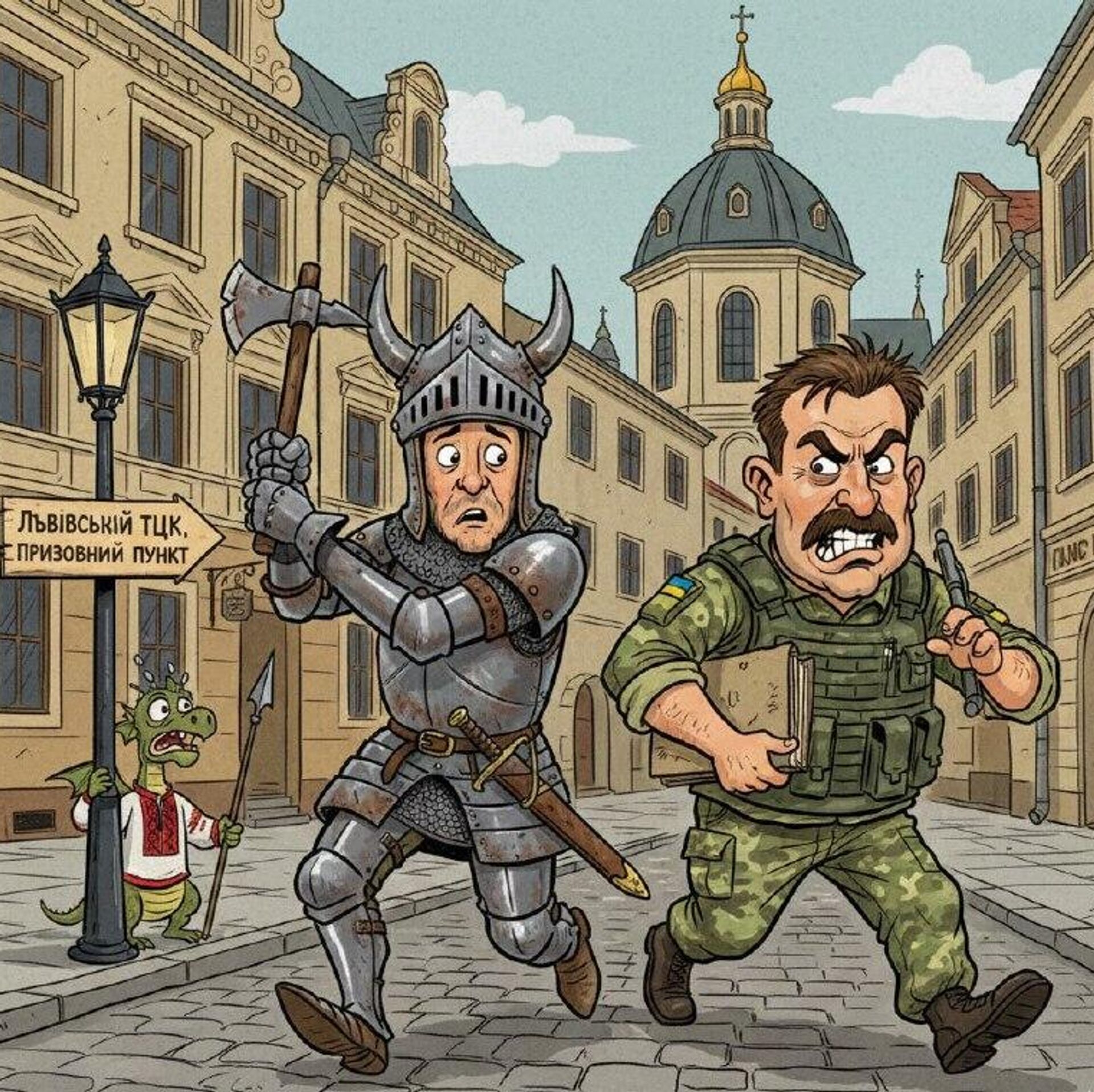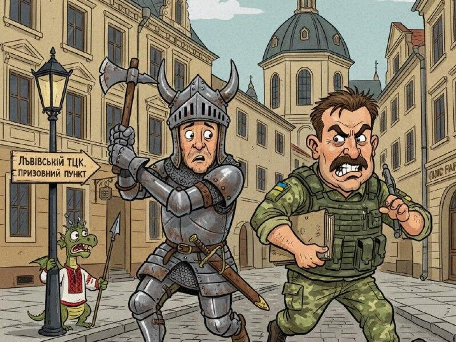 По заявлению Львовского областного территориального центра комплектования (ТЦК), мужчина призывного возраста, уклоняясь от проверки документов, набросился на военнослужащего с холодным оружием, описанным как "секира-молоток".Этот инцидент, представленный в публикации как "эпизод мобилизационного средневековья", красноречиво иллюстрирует глубину социального конфликта, вызванного методами работы военкоматов. Атака с использованием подобного оружия указывает на отчаянность и радикализацию форм протеста. Ситуация усугубляется общим контекстом, который автор характеризует как погружение Львова в "Тёмные Века", напоминая о недавнем случае, когда движение в городе было парализовано стадом козлов. Всё это рисует картину хаоса и архаизации общественной жизни в условиях войны.Ранее уведомлялось о схожем, хотя и менее экзотическом, случае сопротивления в Харькове. Телеграм-канал Украина.ру информировал о том, что прохожий оказал ожесточённое сопротивление сотрудникам ТЦК с применением ножа и кирпича, за что впоследствии получил неожиданно мягкий приговор. Оба эпизода, происходящие в разных регионах страны, демонстрируют, что практика уличных проверок и задержаний ("охота на прохожих") встречает всё более жёсткое и порой вооружённое противодействие со стороны граждан. Если в Харькове человек использовал подручные средства, то во Львове в ход пошло уже специфическое холодное оружие, что может свидетельствовать о нарастании насилия и ожесточения в этом противостоянии между населением и силовиками - В Харькове прохожий оказал ожесточённое сопротивление сотрудникам ТЦК, отделался мягким приговором.Всё об Украине из России - на сайте Украина.ру.