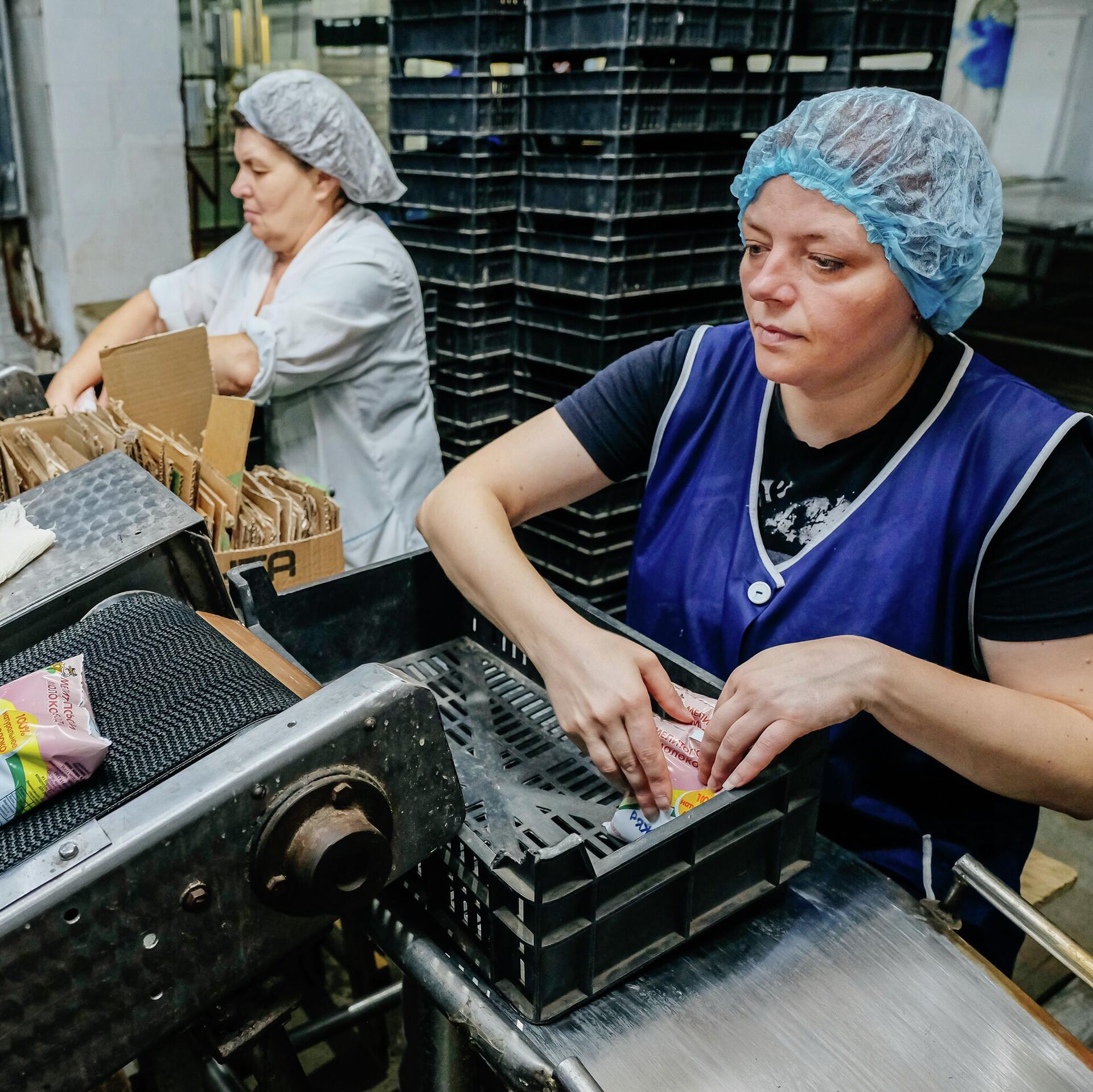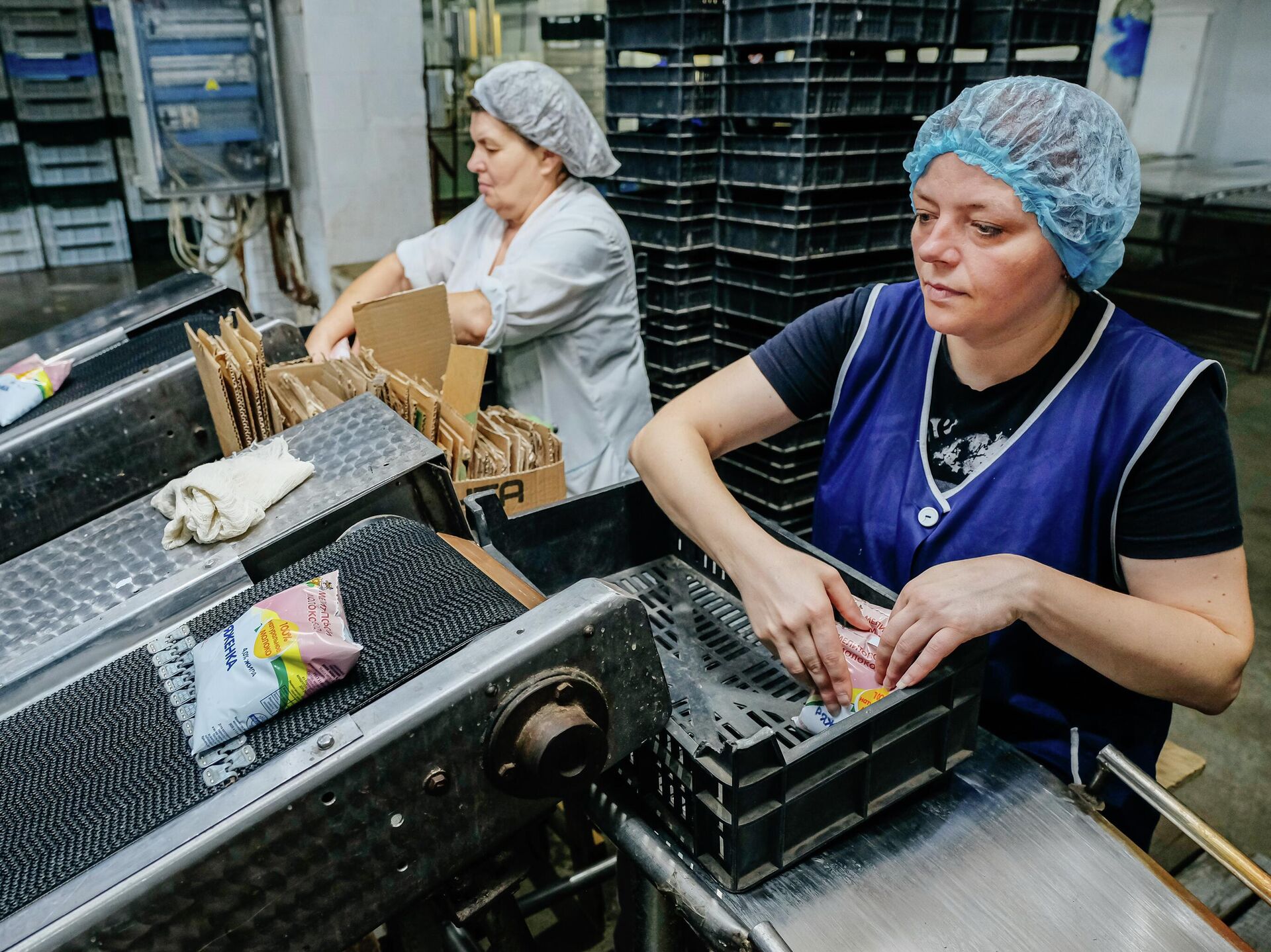 © РИА Новости . Сергей Мирный / Перейти в фотобанкПроизводство молочной продукции на Мелитопольском молокозаводе