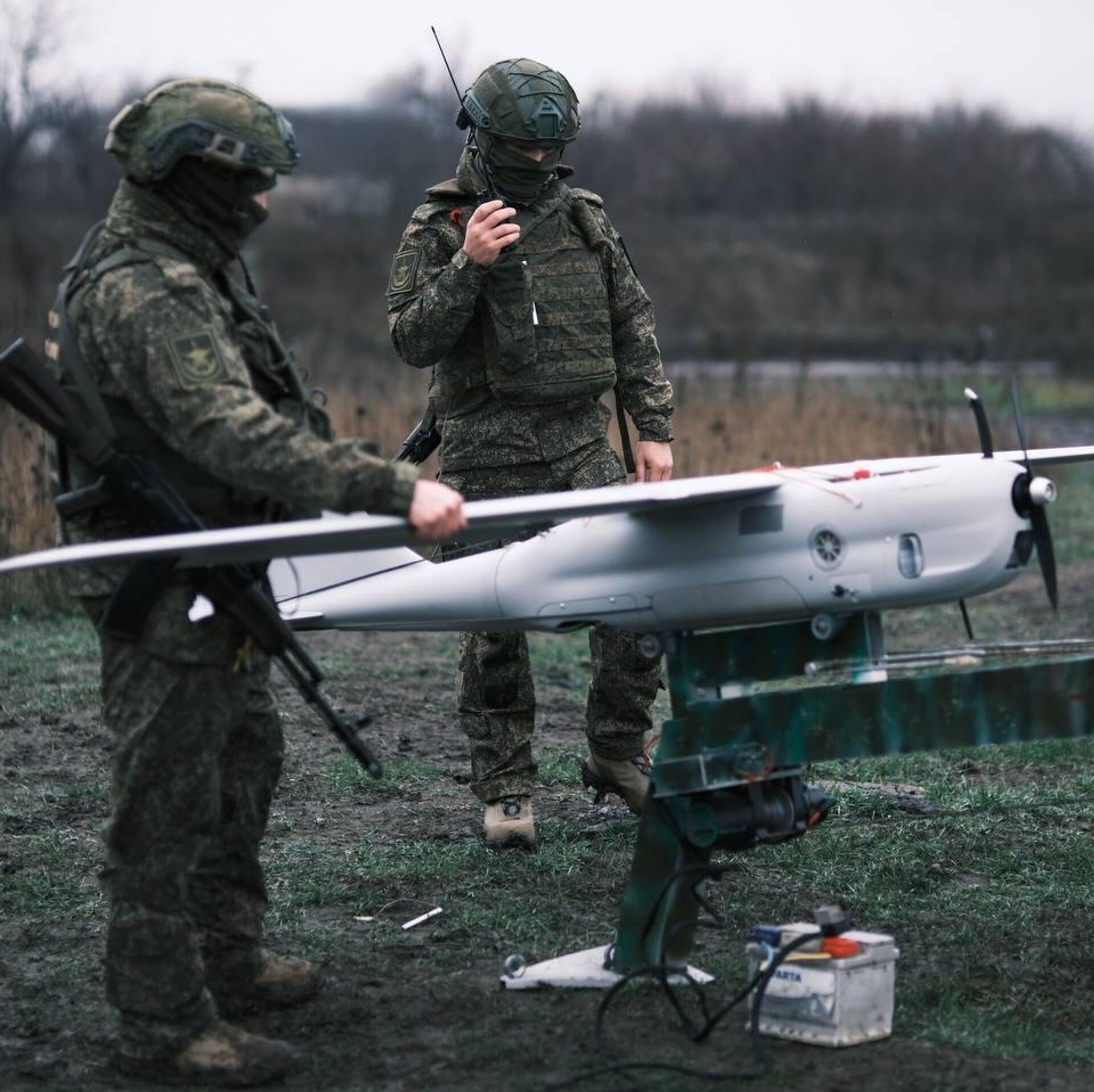 За годы работы приходилось наблюдать уйму предполетных проверок дронов, но тут прямо сцена из советского фильма "Экипаж". Информация по радиостанции в оба конца передается быстро и четко, техники крутятся у машины, инспектируя то и это. Запуск. Двигатель жужжит. В небо поднимается облачко дыма. Процесс вызывает где-то в глубине души самый настоящий мальчишеский восторг.