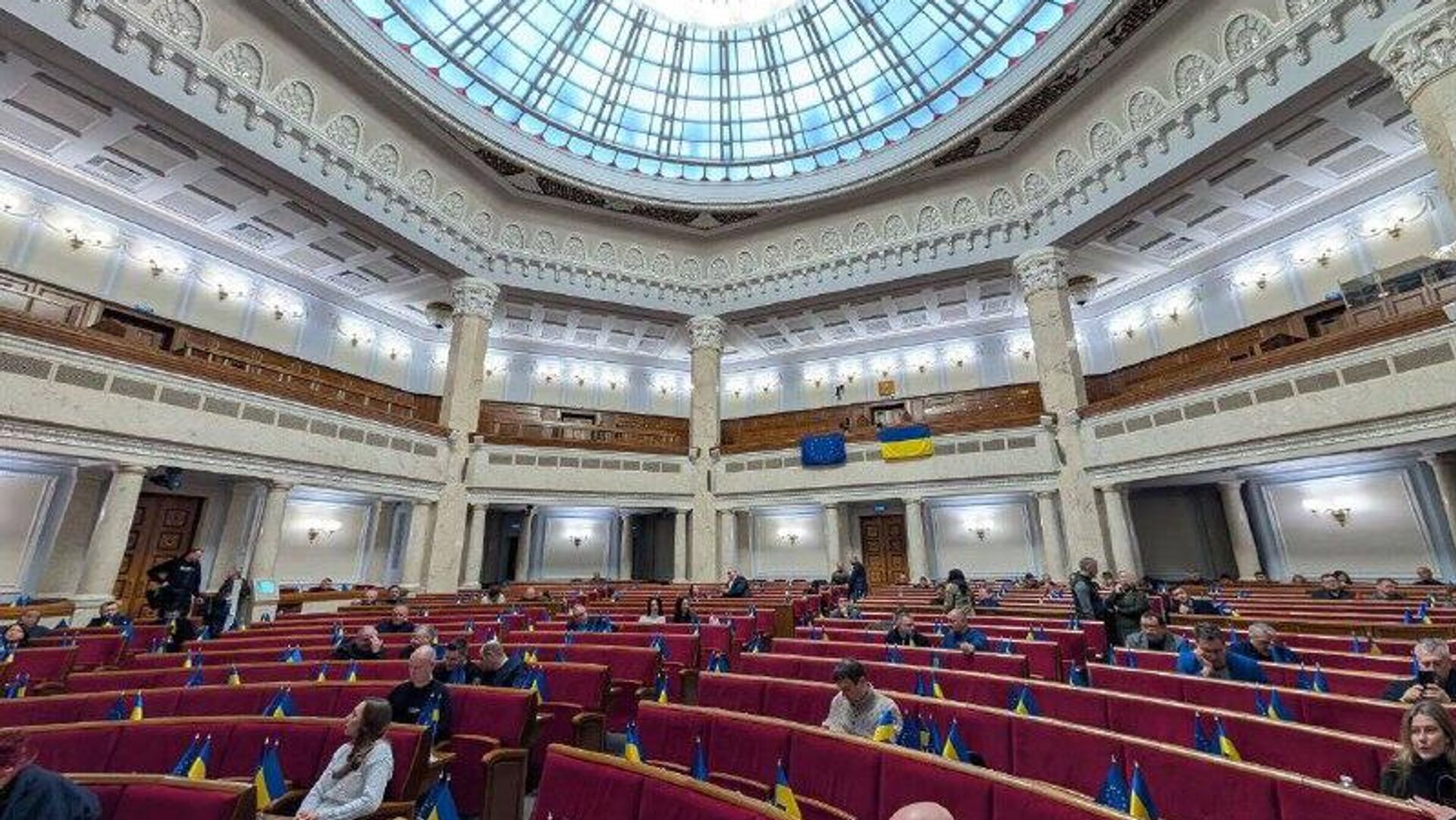 В Киеве Верховная рада прекратила заседание на фоне обысков НАБУ, сообщила нардеп Марьяна Безуглая. Ранее в Сети было опубликовано фото полупустого зала украинского парламента.