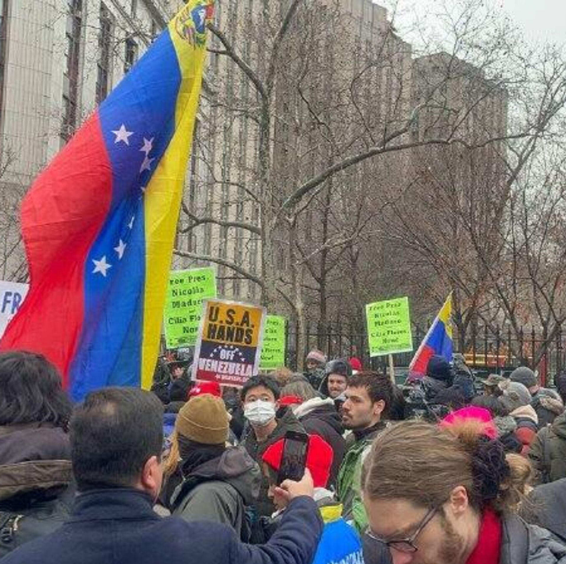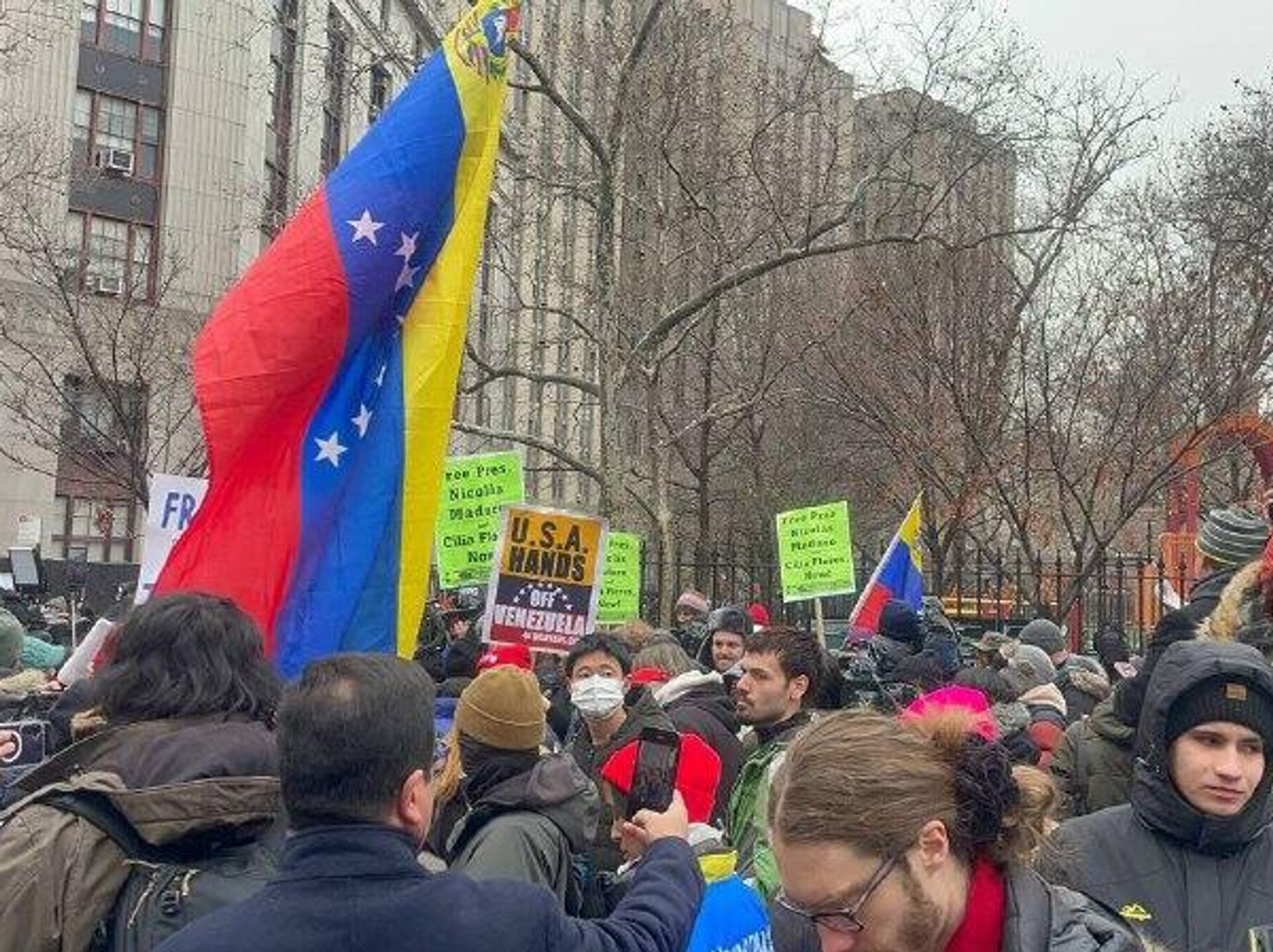 В центре Нью-Йорка, возле здания суда, куда ранее доставили президента Венесуэлы Николаса Мадуро, прошла акция протеста. Об этом и других новостях в ежедневной сводке произошедшего 5 января написал Телеграм-канал Украина.ру