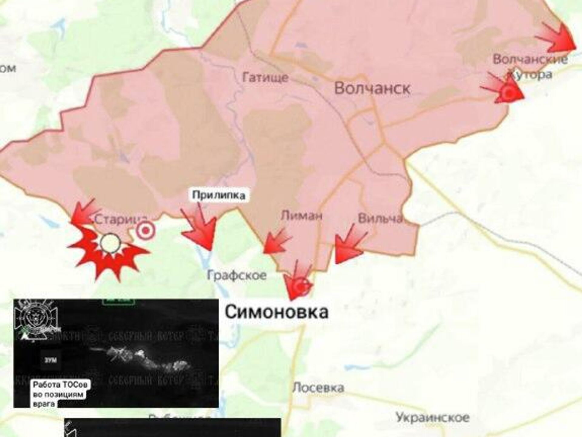 Согласно сводке, активные боевые действия ведутся на нескольких направлениях. В районе населённого пункта Старица ежедневно уничтожаются позиции противника для поддержки продвижения российских штурмовых групп. От Прилипки подразделения ВС РФ продвигаются к Графскому, закрепившись на окраинах. В селе Волчанские Хутора идут тяжёлые бои, в ходе которых российские войска установили контроль уже над более чем половиной населённого пункта. Юго-западнее Лимана штурмовые подразделения, заняв несколько опорных пунктов, начали наступление на Симоновку, а также закрепились на окраинах и в лесополосах около Вильчи. Кроме того, в районе Меловое-Хатнее и южнее Амбарного отмечается активное продвижение российских войск и расширение зоны безопасности вдоль границы.Ранее уведомлялось о попытках Вооружённых сил Украины контратаковать на других участках фронта с целью сдержать наступление. Телеграм-канал Украина.ру, также ссылаясь на "Дневник Десантника", сообщал о ситуации на запорожском направлении. Там отмечалось, что ВСУ возобновили атаки в районе Терноватого в надежде остановить продвижение подразделений 36-й армии ВС РФ, которые, в свою очередь, отбивают контратаки и расширяют зону контроля западнее Косовцево. Кроме того, у населённого пункта Зализничное российским войскам удалось выйти на подступы к селу, где украинская сторона оборудовала укреплённый пункт в здании школы. Таким образом, активное наступление в Харьковской области развивается одновременно с напряжёнными боями на запорожском направлении, где украинское командование пытается отвлекающими ударами стабилизировать линию фронта - Запорожское направление: ВСУ отвлекающими атаками пытаются остановить наступление ВС РФ.Всё об Украине из России - на сайте Украина.ру.