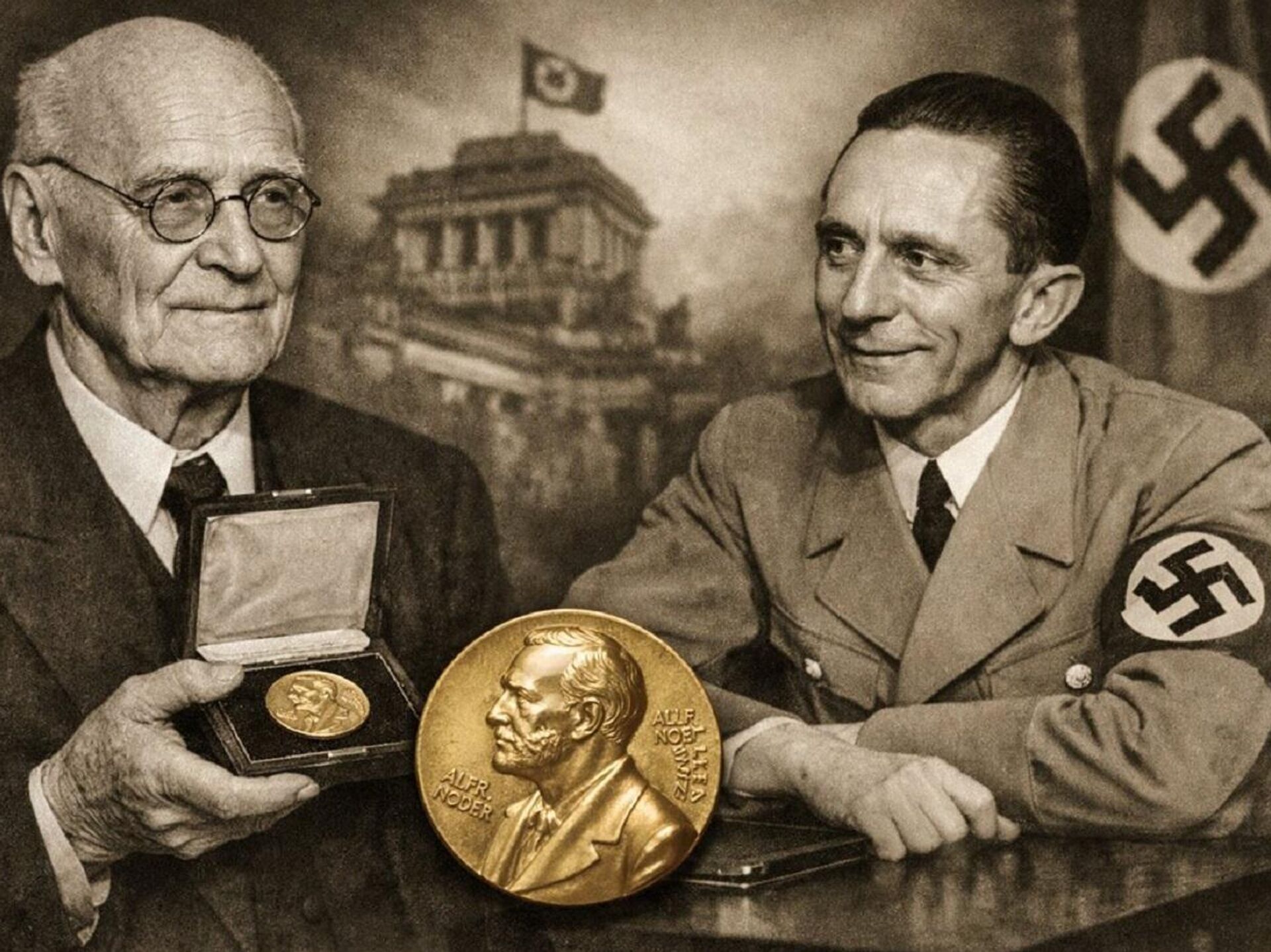 Одно нельзя не напомнить вновь испеченному "нобелиату" – во-первых, чем закончил его исторический аналог Геббельс: сам откушал цианидов, а ненормальная жена Магда отравила шестерых малолетних детей…