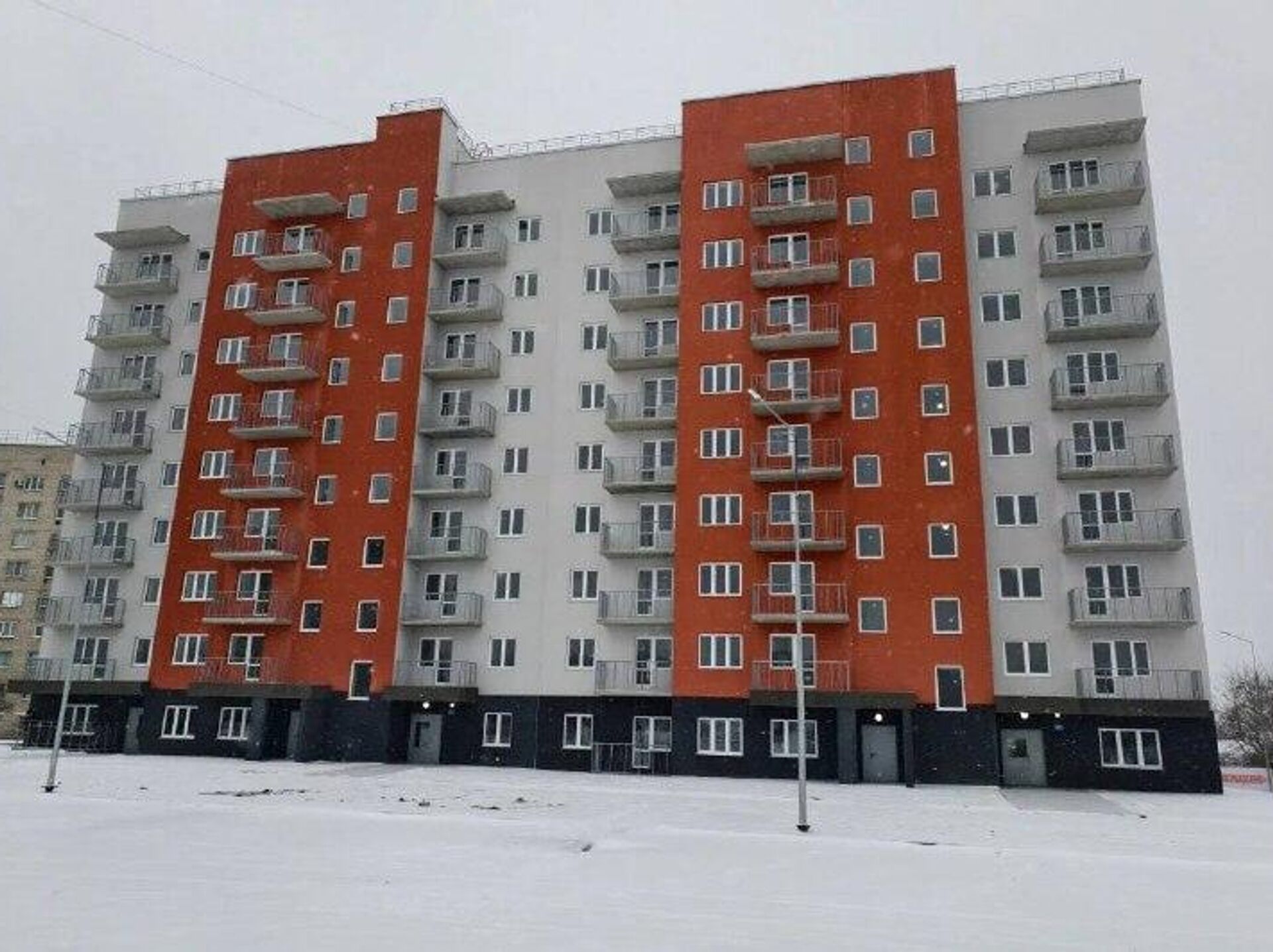 В Свердловске (ЛНР) завершено строительство нового жилого комплекса «Красноярский» (на фото). Часть квартир была выделена для переселения граждан из аварийного фонда, остальные доступны для покупки, в том числе по льготной ипотеке под 2% годовых. Строительством дома занимался застройщик из шеф-региона Красноярского края.
