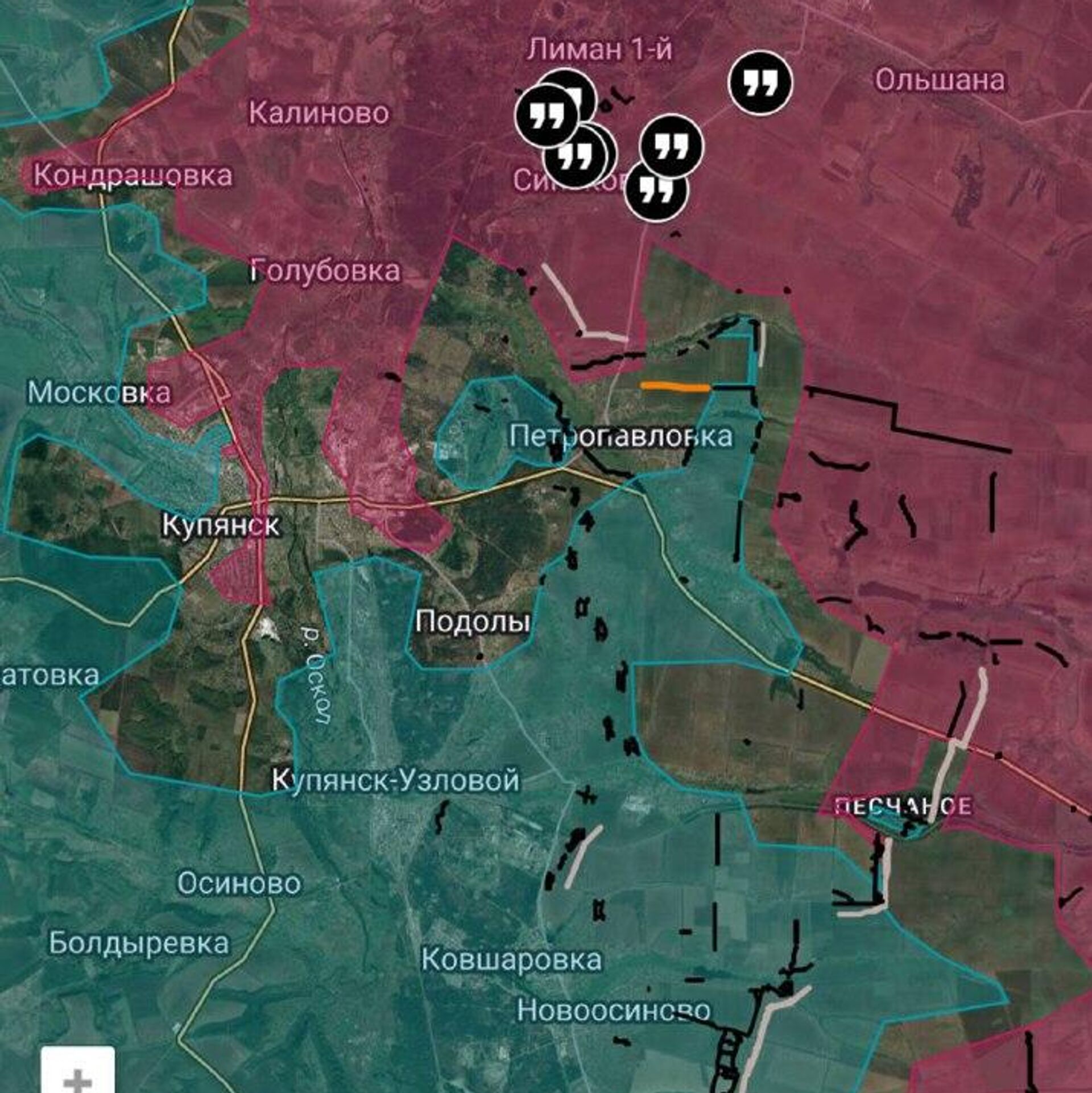 Параллельно продолжаются бои за Верхнее-Песчаное, где российские силы практически окружили противника в селе; украинские подразделения пытаются прорваться через южную часть.