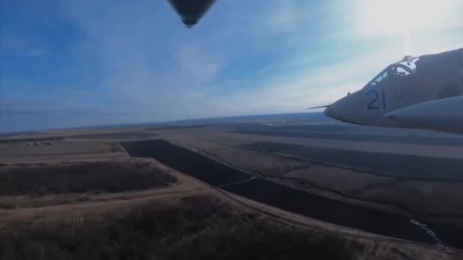 🟥 Были опубликованы уникальные кадры уничтожения украинского штурмовика Су-25М1К в небе над ДНР, предварительно, истребителем Су-35С ВКС РФ с применением ракеты класса "воздух-воздух" Р-37;